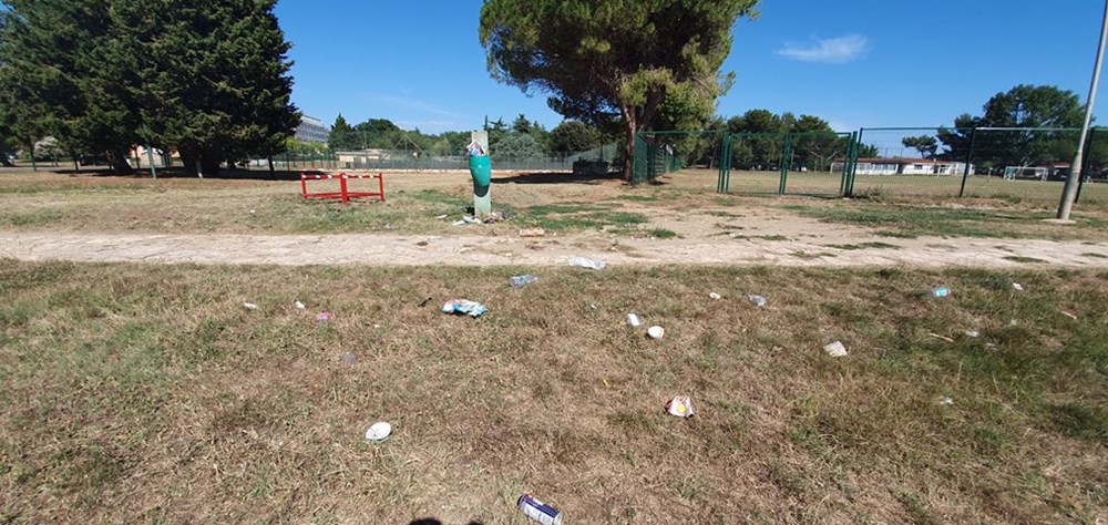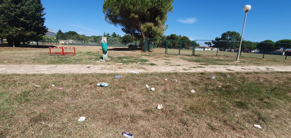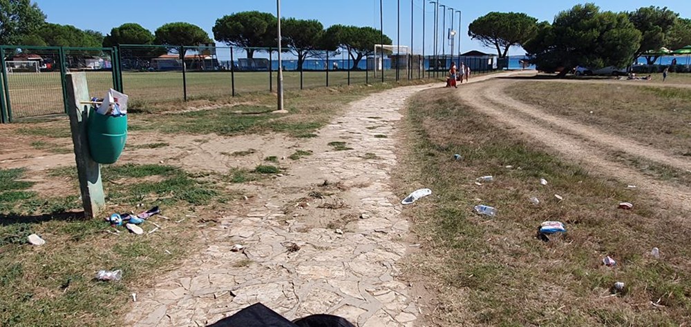 Domaće i strane goste koji borave u Medulinu, na plaži kod terase Europa svakodnevno dočekuju hrpe razbacanog smeća iz očito premalih kanti.