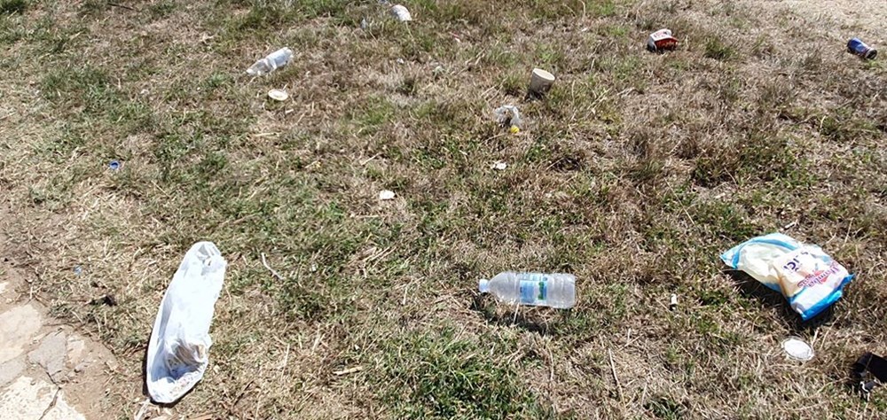 Kante koje su na šetnici postavljene prekrcane su smećem koje je još i vjetar koji koji ovih dana puše, razbacao okolo po livadi.