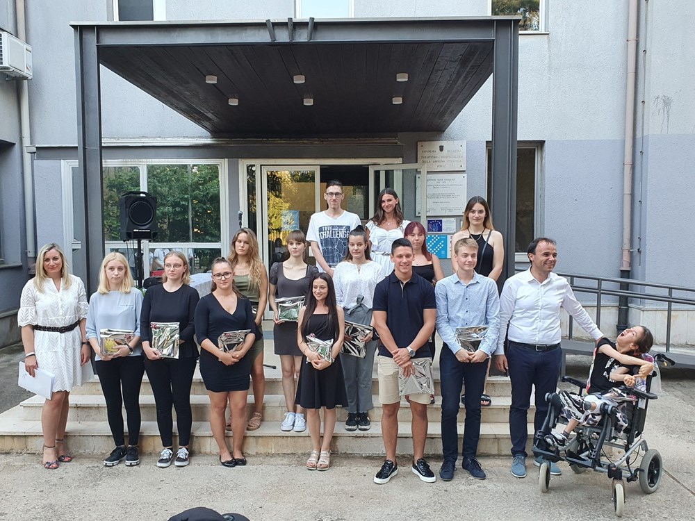 daljinu, nisu se mogli družiti, putovati, zabavljati. No, osmijeh nije silazio s njihovih lica, hrabro i dostojanstveno stigli su do današnjeg dana- kraja svog srednjoškolskog obrazovanja i na tome im iskreno čestitamo. Želimo im puno uspjeha i sreće u daljnjem školovanju i radu, te nadamo se će im naša škola ostati u sjećanju samo po onom najboljem. Nadamo se da će nas često posjećivati, a mi ćemo im uvijek rado biti na raspolaganju“, poručila im je ravnateljica.