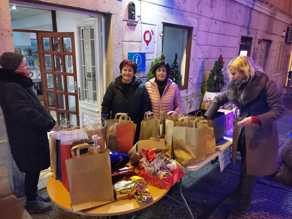 Ispod Toriona smjestio se punkt gradske organizacije Crvenog križa koji je prodavao plišane igračke a udruga žena Mendula organizirala je bogatu humanitarnu lutriju za nabavu mamografa. Irene Mikuljan iz Udruge žena Mendula rekla nam je kako je zahvaljujući sponzorima i donatorima prikupljeno 400 raznih nagrada, a svaka je srećka kupljena po cijeni od 50 kuna dobivala.