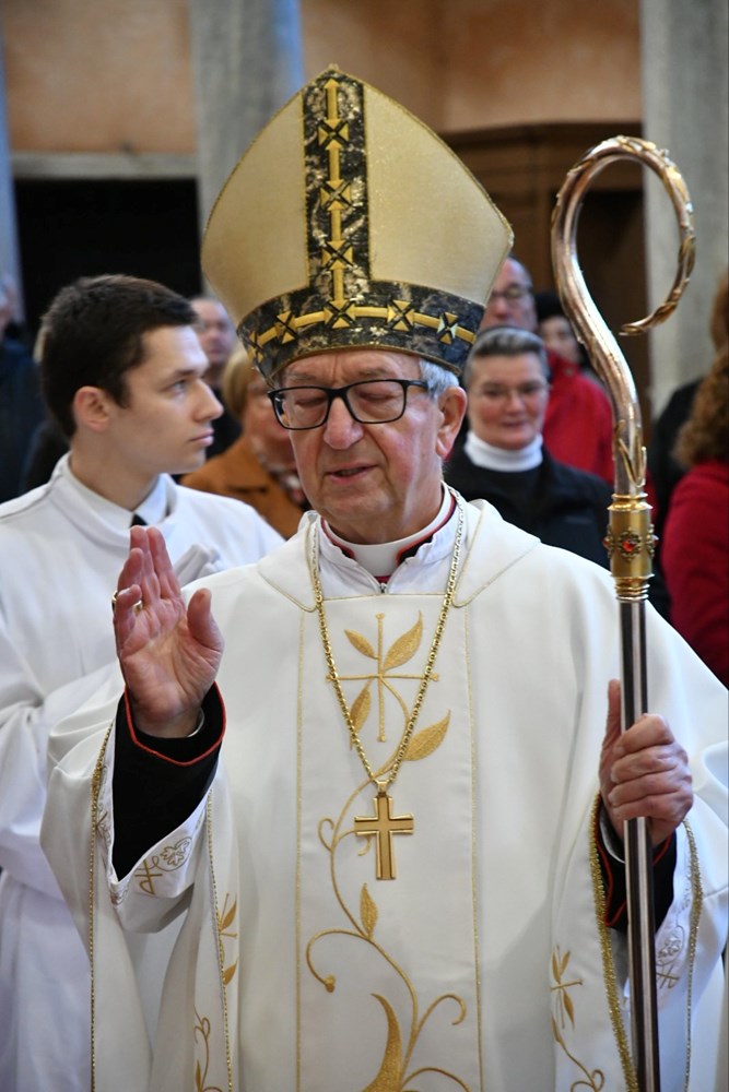 Mons. Ivan Milovan jučer je predvodio svečanu euharistiju u porečkoj katedrali, četvrt stoljeća nakon što je u istoj katedrali zaređen za biskupa 10. siječnja 1998. Na svečanom misnom slavlju koncelebrirali su apostolski upravitelj Porečke i Pulske biskupije nadbiskup mons. Dražen Kutleša, nadbiskup i metropolita riječki mons. Mate Uzinić, nadbiskup i metropolita đakovačko-osječki mons. Đuro Hranić, umirovljeni nadbiskupi mons. Marin Srakić i Ivan Devčić, biskup mons. Vjekoslav Huzjak te umirovljeni krčki biskup mons. Valter Župan. Koncelebriralo je 50-ak svećenika.