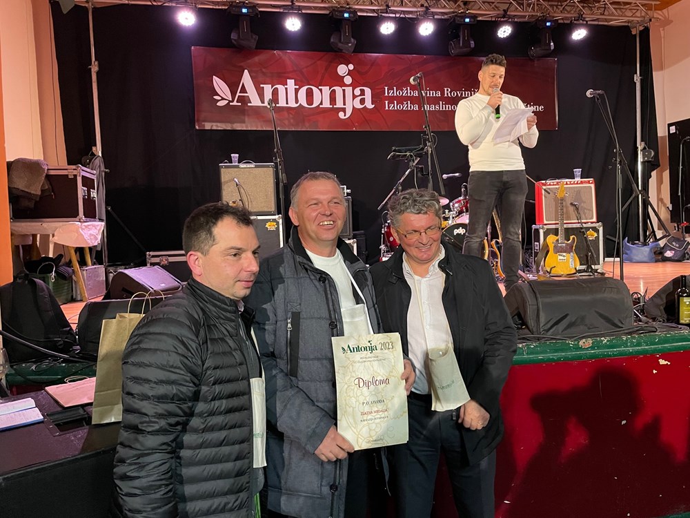 Na ovogodišnjoj Antonji predan je i ocijenjen rekordan broj uzoraka maslinovog ulja, čak njih 86. Od toga, zlatnom medaljom nagrađeno je 63 ulja, srebrnom 16, a brončanu medalju dobilo je 7 ulja. Posebno se istaknulo prvih pet ulja proizvođača Rovinjštine, pa su se tako među najboljima pronašli Massimo Mofardin, Hrvoje Labura, Boris Korenić i Dragan Mofardin, dok je šampionsku zlatnu titulu zaslužio Marko Črnac s ukupno 93 boda.