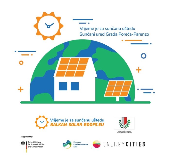 Uspostava Sunčanog ureda Grada Poreča predstavlja jednu od aktivnosti u sklopu provedbe projekta Balkan solar roofs, a koji je financiran u okviru Europske klimatske inicijative (EUKI) njemačkog Saveznog ministarstva za ekonomska pitanja i klimatske mjere (BMWK). Grad Poreč projekt provodi u suradnji s međunarodnim udruženjem Energy Cities, REIC Sarajevo, te Gradom Mostarom(BiH) i Gradom Kragujevcem (SRB).