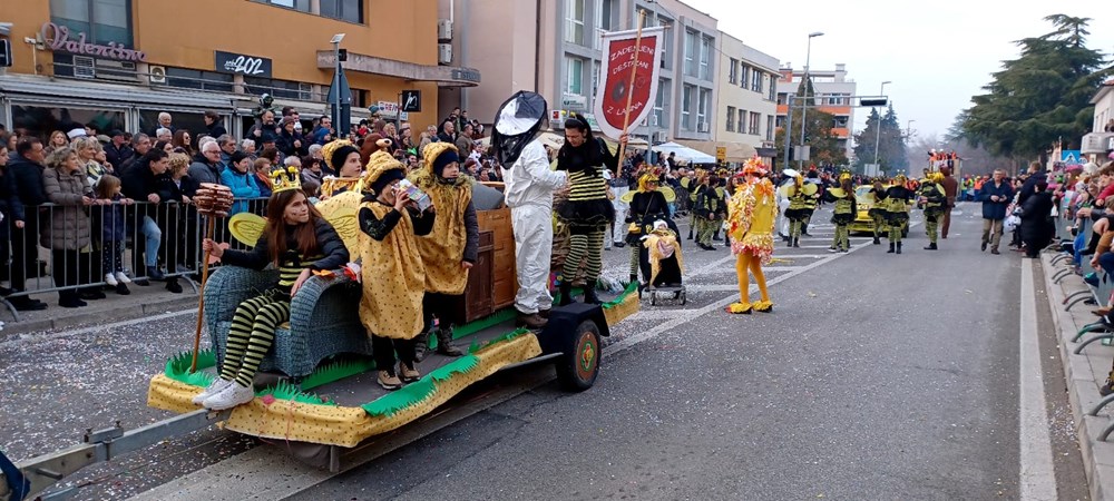 Labinsku maškaranu skupinu 'Zadenjeni i deštakani' činili su odrasli s djecom. Bili su pčelice, odnosno ŠČelice a čak je i jedna beba stara šest mjeseci bila mala ŠČelica. Maškare iz Koromačna maskirali su se u časne sestre i svećenike. Među mnogobrojnom publikom koja je promatrala povorku maškara bio je i Pust Centezimo koji je visio na balkonu susjedne zgrade a u utorak ga čeka suđenje i spaljivanje čime će Karneval završiti.
