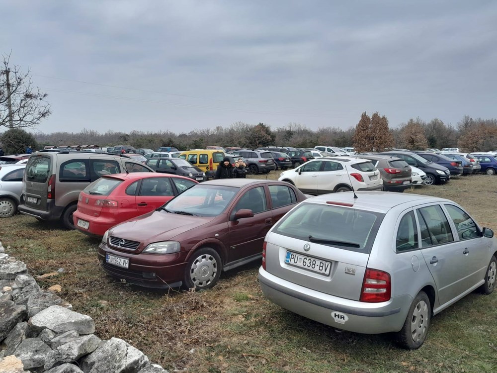 Zabilježili smo i jednu zanimljivost. Za one koji su htjeli ponijeti uspomenu - mogli su kupiti domaće jabuke s Pazinštine, palentu, čajeve, košare od ratana i drvene kuhače pa čak i kamenje s natpisom Sveta Foška, koji donosi sreću ako se za njega izdvoji tri eura.