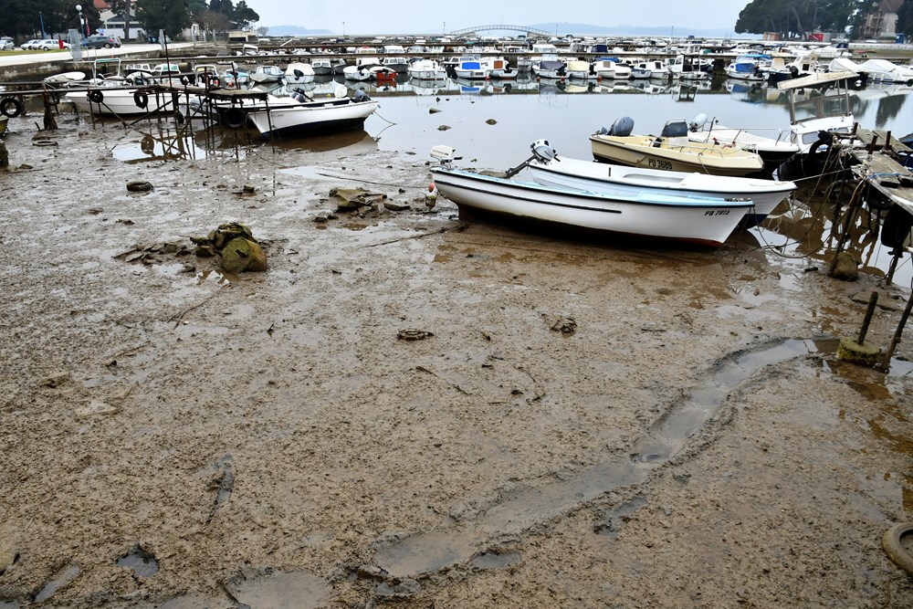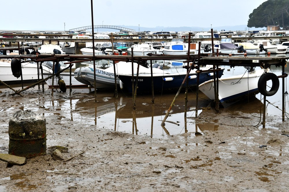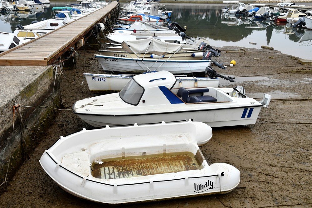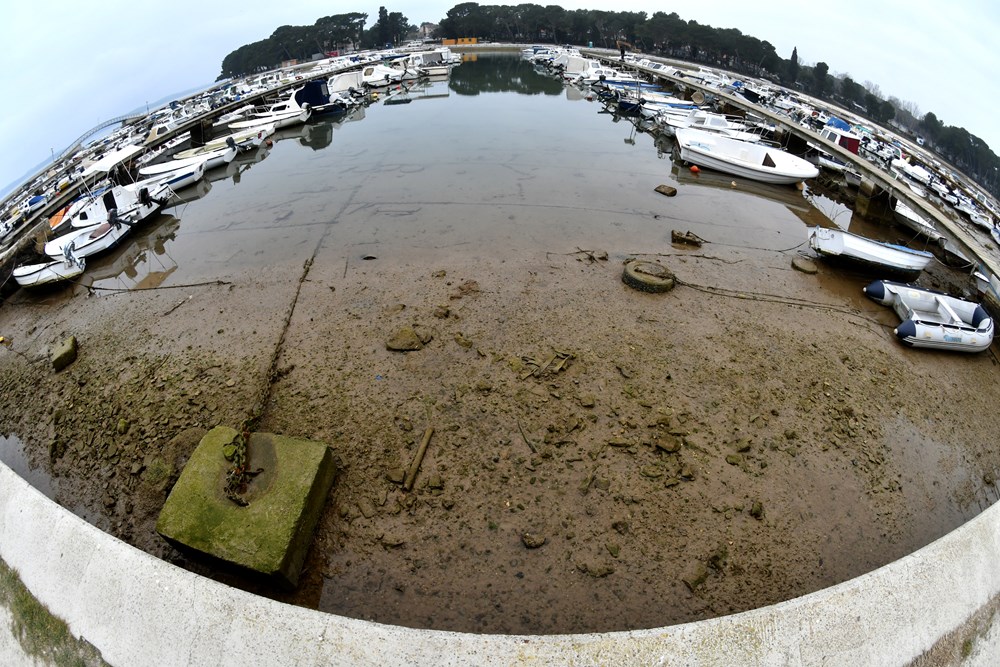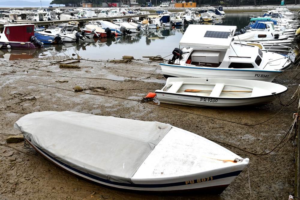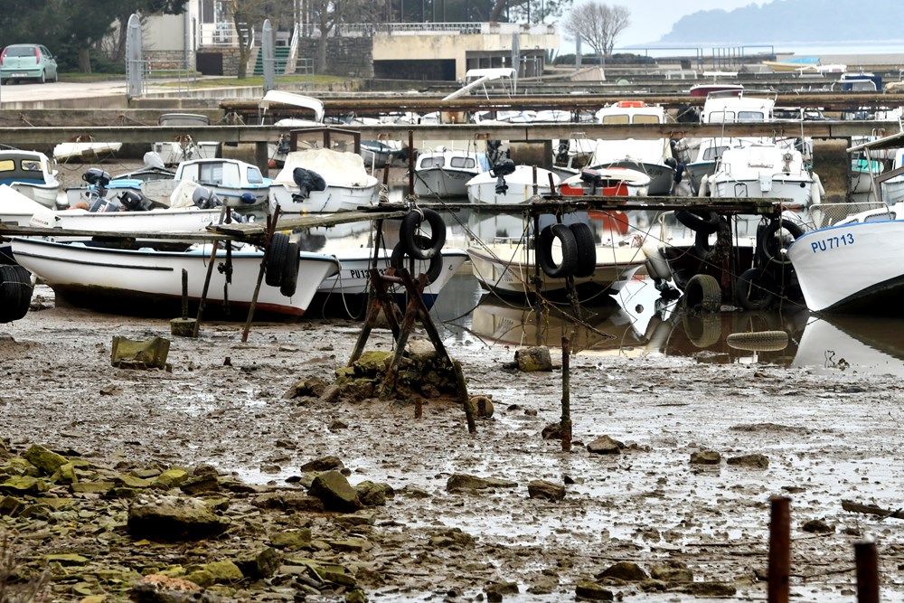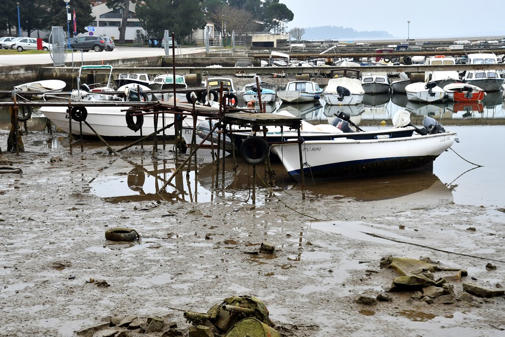 Neobično jaka oseka povukla je more iz lučice u Valbandonu, danas se tamo mogu vidjeti barke koje su ostale doslovno na suhom.