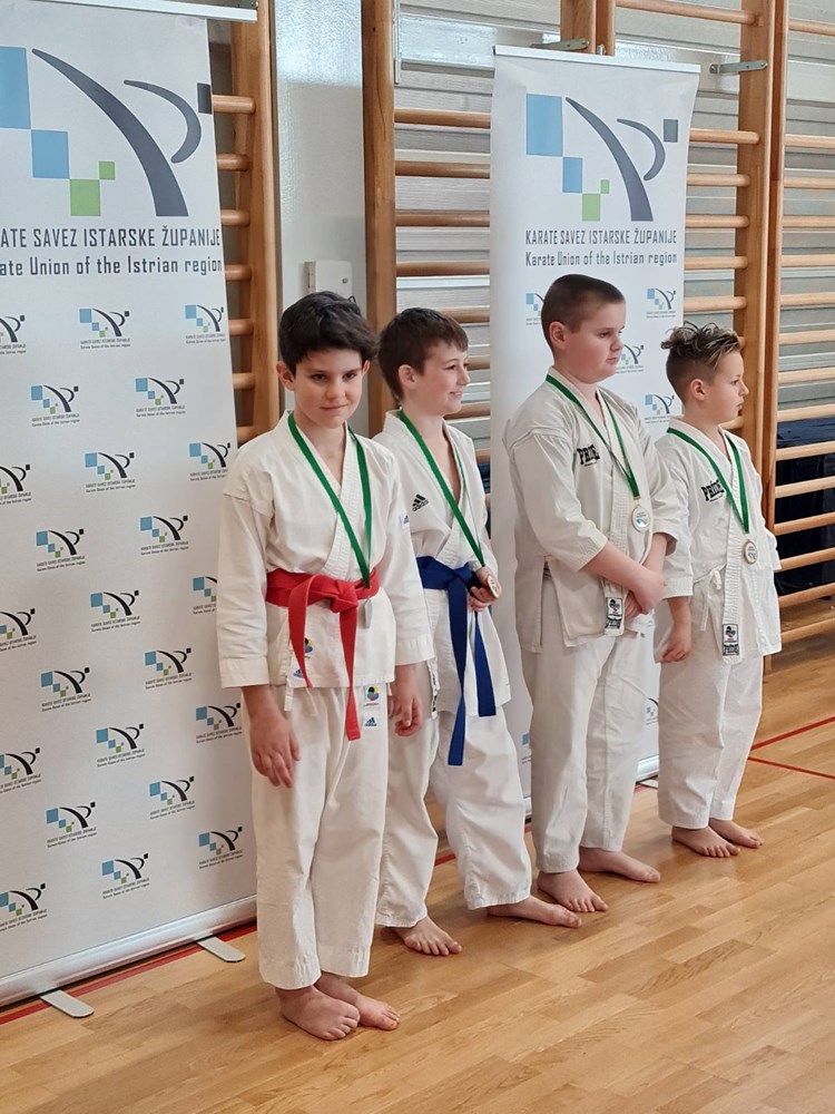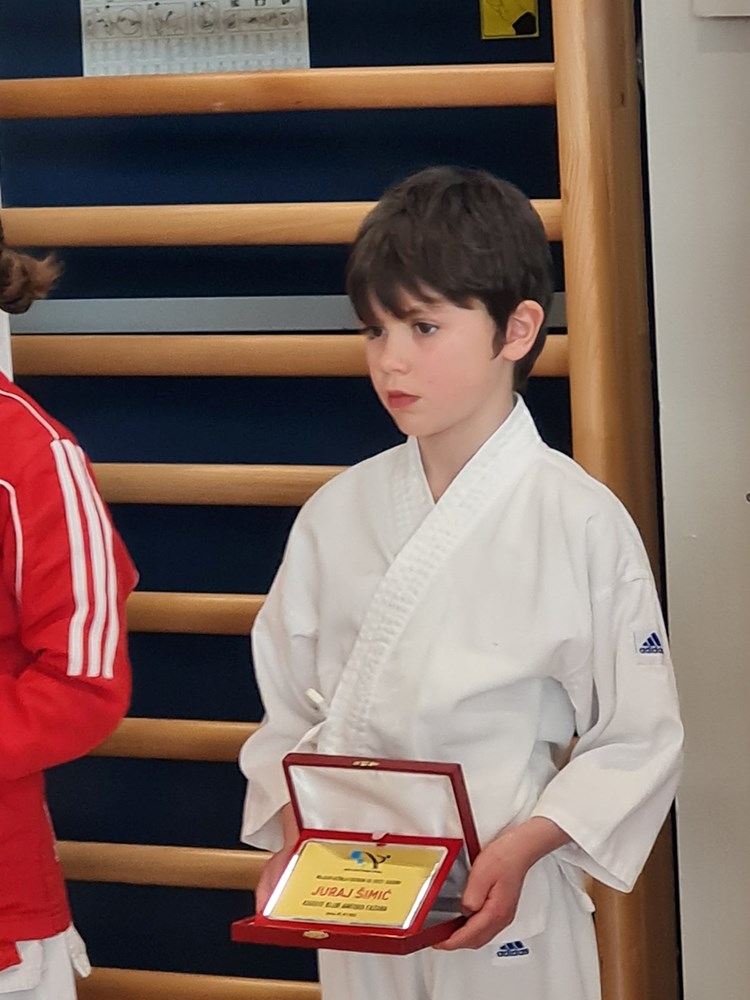 Prije samog natjecanja dodijeljene su nagrade za najbolje u prošloj godini. Naš Juraj Šimić dobio je priznanje za najboljeg u kategoriji cicibana, a onda je na natjecanju dokazao da je to zaslužio. Uvjerljivi je prvak u svojoj kategoriji, a onda su ga posudili iz karate kluba Novigrad u kata-tim s kojim je osvojio još dva srebra.