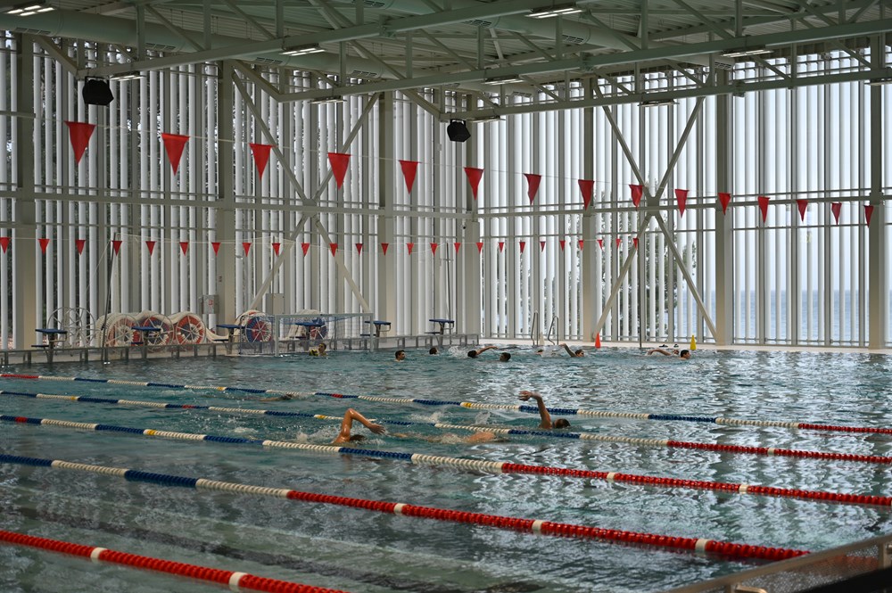 Jedinstvenost ovog bazena je i to što ima pomično dno u širini tri staze i duljine 25 metara, koje se od maksimalne dubine bazena od dva metra podiže do nulte točke. Pomično dno povećava fleksibilnost i funkcionalnost bazena i to u razne svrhe, jer omogućuje da jedan bazenski spremnik prihvati nekoliko aktivnosti istovremeno, ili na različitim dubinama.