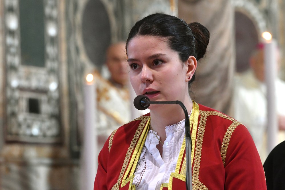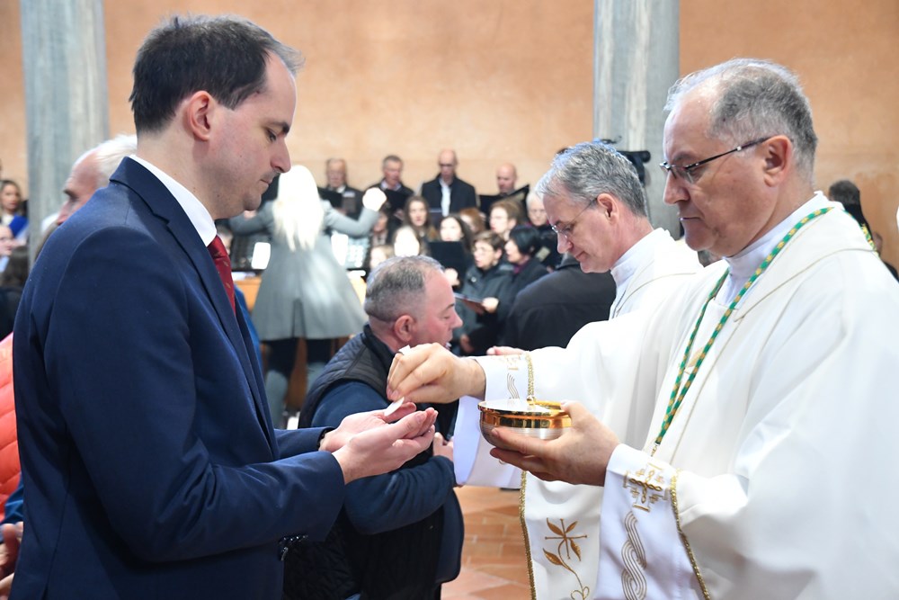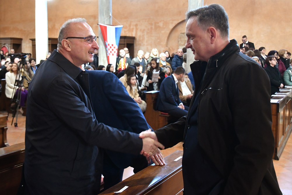 Svi govori biskupa i čestitara bili su popraćeni dugotrajnim pljeskom. Ceremonijom je upravljao Rikardo Lekaj, pulski katedralni župnik, združenim zborom istarskih župa Aleksandra Orbanić, voditeljica žminjskog Zbora sv. Mihovila, uz orguljsku pratnju Nele Božac. Pjevačkom zboru rekao je, "lijepo ste kantali" i zaslužio pljesak.