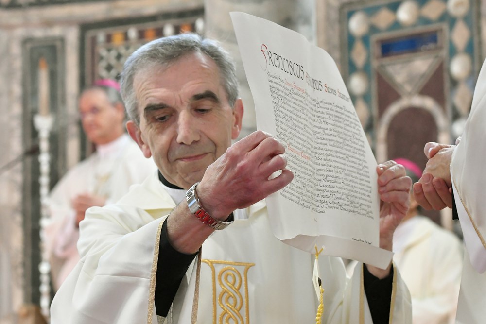 Apostolski nalog o biskupskom imenovanju vjernicima je pokazao kancelar mons. Sergije Jelenić, a na hrvatskom jeziku pročitao mons. Giorgio Lingua, apostolski nuncij u Hrvatskoj. Nakon čitanja naloga pape Franje, nadbiskup mons. Kutleša predao je mons. Ivanu biskupski štap i dopratio ga do biskupske katedre. Od toga trenutka novi porečki i pulski biskup Ivan preuzeo je predvođenje euharistijskog slavlja i upravljanje Porečkom i Pulskom biskupijom. Crvena nit propovijedi mons. Štironje bilo je njegovo biskupsko geslo "Bog je ljubav".