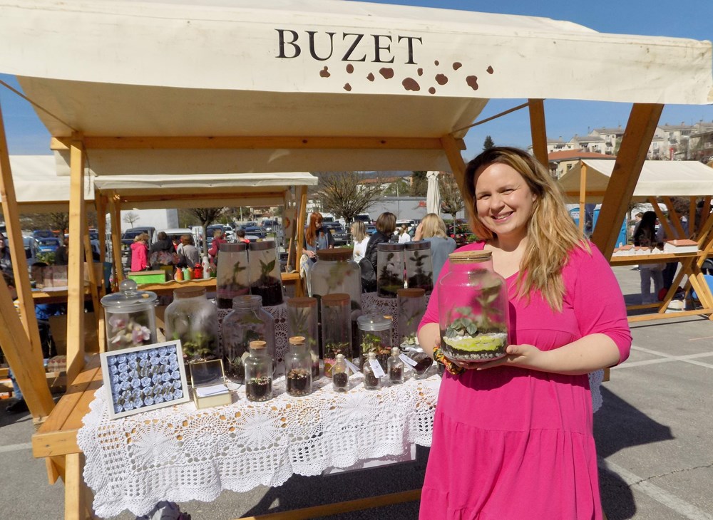 Sumještanima su se na svom štandu s ručnim radovima predstavili mališani iz vrtića "Grdelin" koji su izrađivali torbe, ukrasno kamenje, okvire, magnete. Rukotvorine je izložio i 83-godišnji Buzećan Silvano Komar koji izrađuje minijature od drva i glinamola, kažune, boškarine, vozove, poljoprivredni alat, crkvice, dok su Ana Pulić iz Lupoglava i Ivana Šćulac iz Barušići nudile biljne terarije. Lokalne cvjećarne i trgovine "Morena", "Loredana" i "AM centar" imali su promotivne cijene na dio ponude.