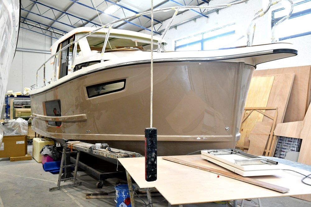 Brod duljine gotovo 10 metara s luksuznom opremom rađa se već više od tri godine, od ideje pa sada do skorašnje realizacije. Samo se dokumentacija pomno crtala godinu i pol, da bi zatim u hali nastajala poboljšana verzija svih dosadašnjih plovila.