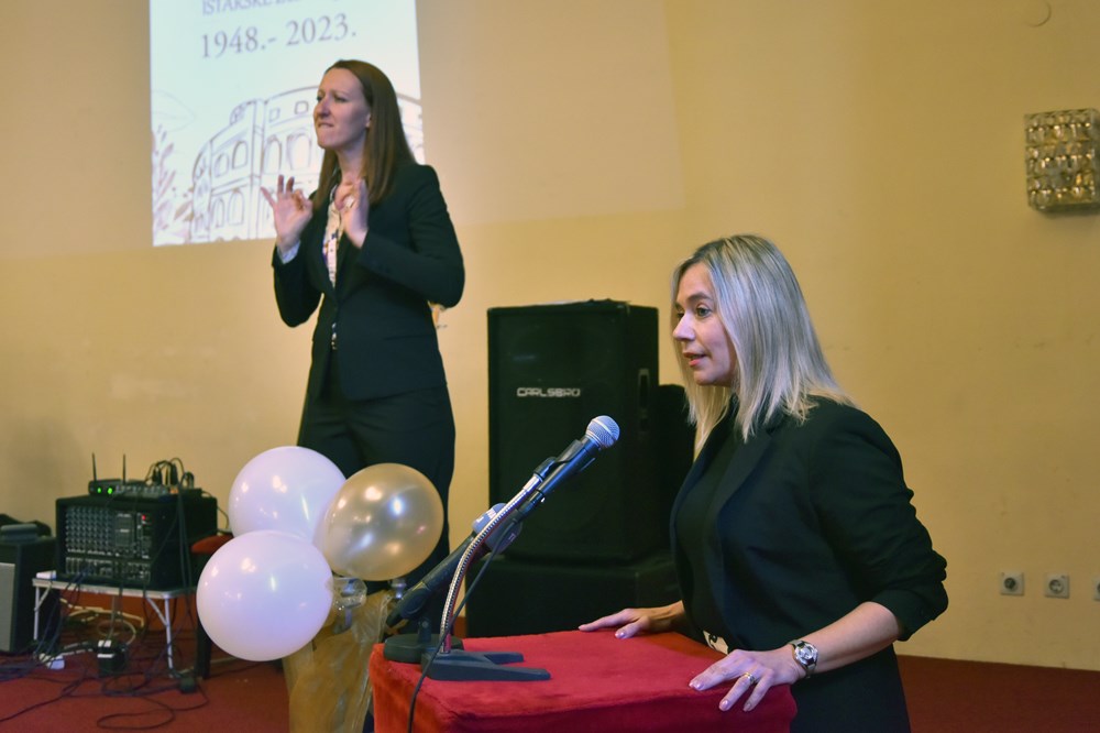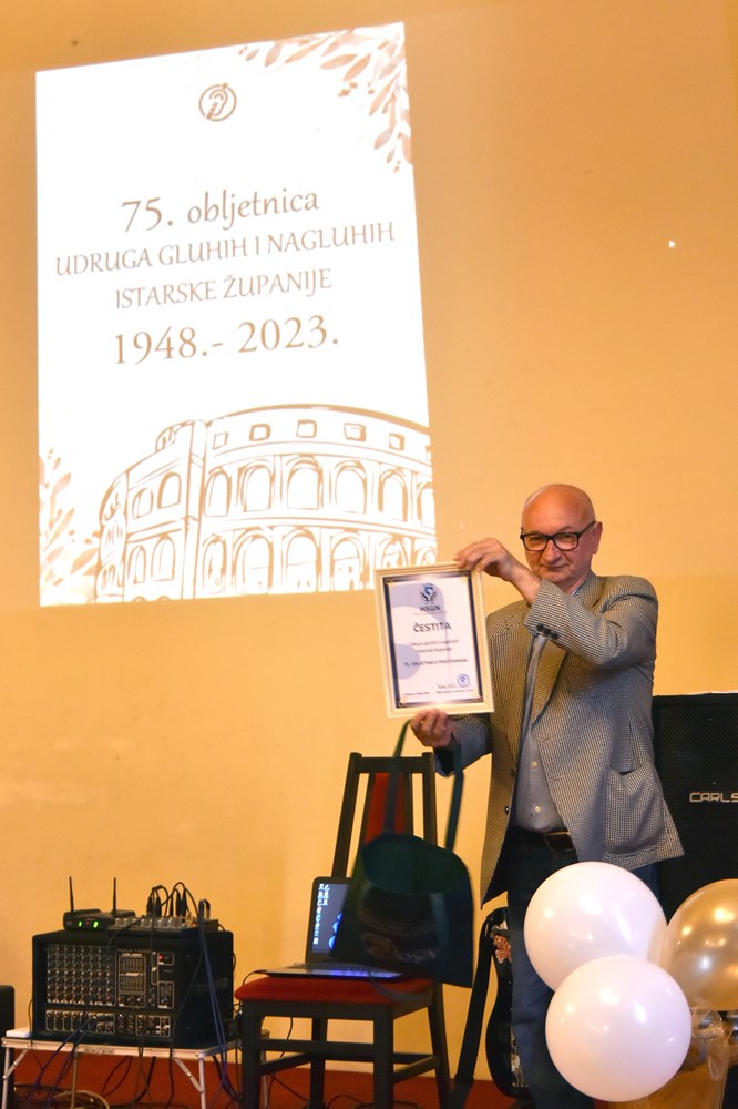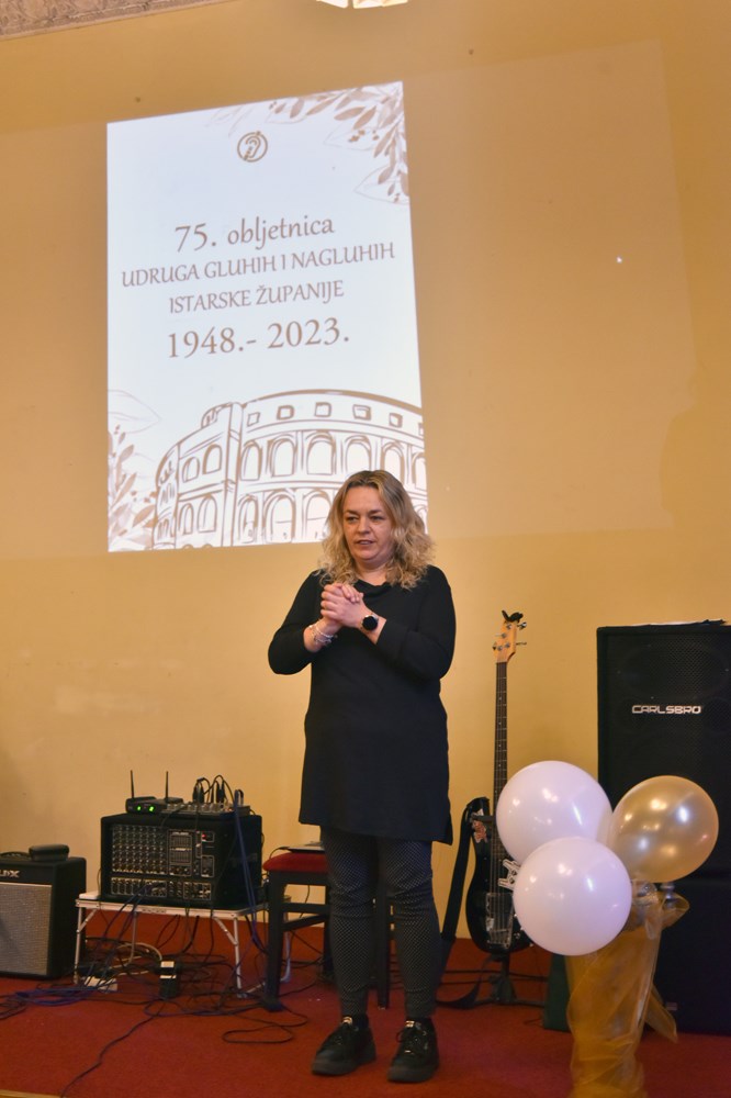 Čak 75 godina postojanja obilježila je danas u Domu hrvatskih branitelja Udruga gluhih i nagluhih Istarske županije. Voditeljica programa proslave bila je Tatjana Vodnik, a na znakovni jezik sve je prevodila Lorena Benčić. Riječ je o jednoj od najstarijih udruga u Hrvatskoj za gluhe i nagluhe, a ujedno i jedna od najstarijih udruga osoba s invaliditetom Istarske županije, od izuzetnog značaja za ove osobe i članstvo. Upravo je te respektabilne godine postojanja posebno naznačila Dijana Vincek, predsjednica Hrvatskog saveza gluhih i nagluhih, u želji da zajedno proslave i stoti rođendan.