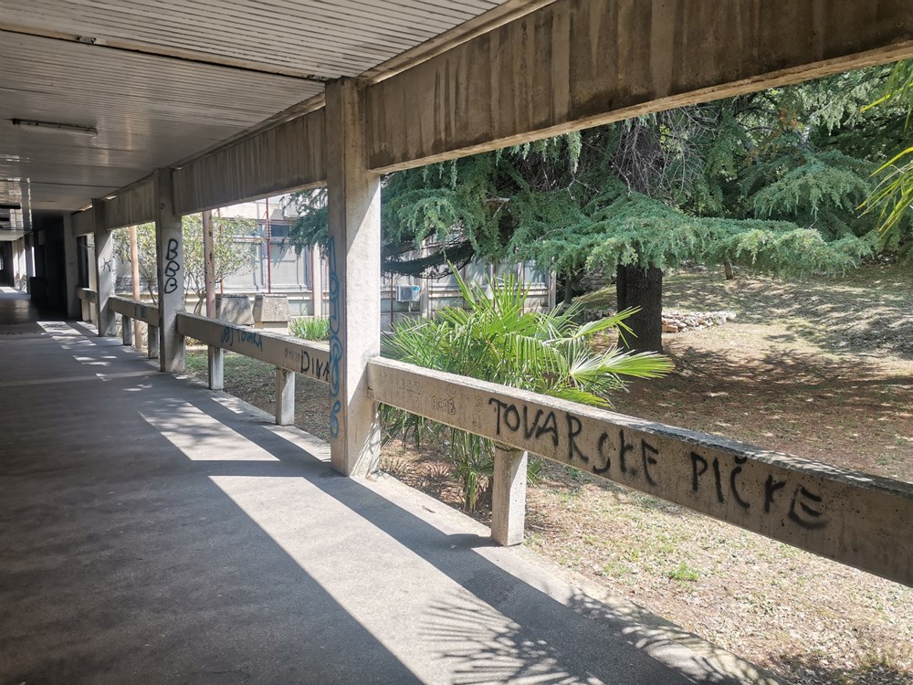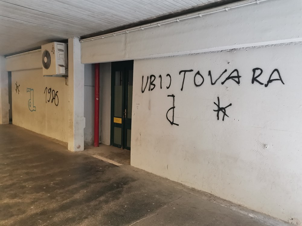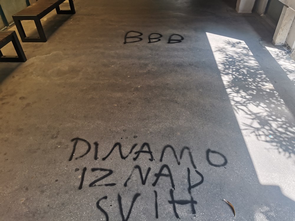 Poruke u kojima izražavaju ljubav prema Dinamu, a mržnju prema Hajduku, Torcidi, Rijeci i Armadi ispisali su po zidovima, vratima ambulanti i podovima hodnika Doma zdravlja.