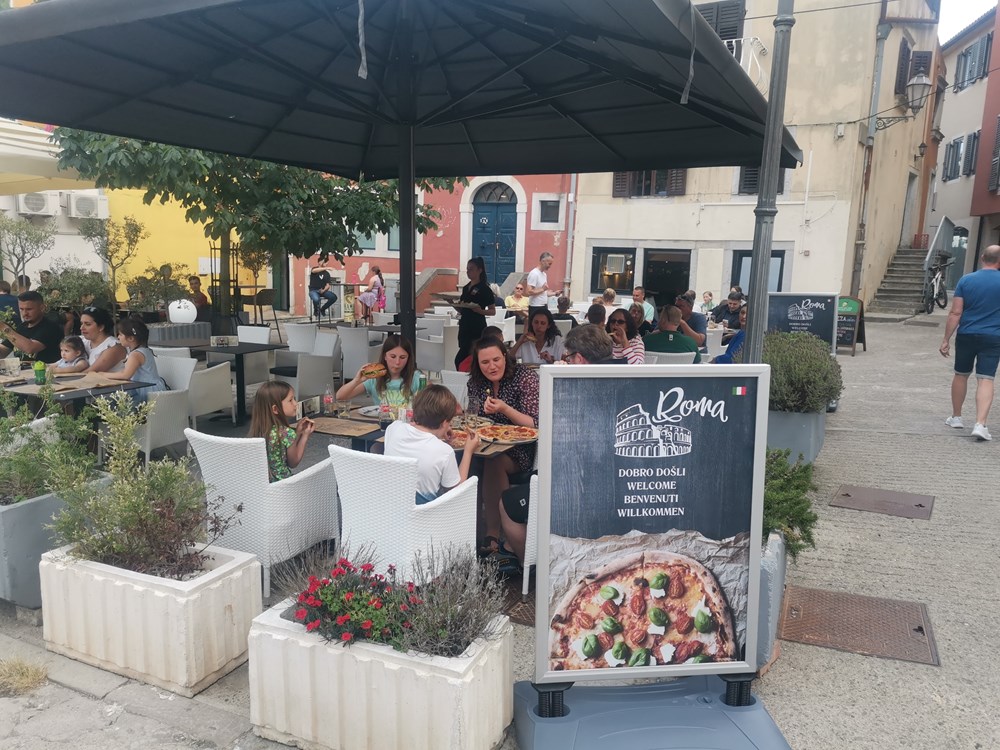 Nakon već poznatih pizzerija Rumore i Napolija, labinski stari grad dobio je još jedan ugostiteljski objekt koji nudi pizze, ali i jela s roštilja, hamburgere i salate. Na Titovom trgu, odmah preko puta zgrade Grada Labina, koncem svibnja u prostoru nekadašnjeg kafića Spider otvorena je Pizzeria Roma koja je postala nova gastro lokacija za Labinjane i turiste koji svakodnevno dolaze u stari grad.