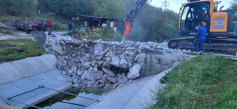 Nakon peticije sa više od 400 potpisa mještana Raše koja je predana općinskoj upravi, radnici obrta Antirost iz Delnica koji se bavi sanacijom čelika i betona te pratećih skelarskih radova, srušili su sporni most u donjoj Raši.