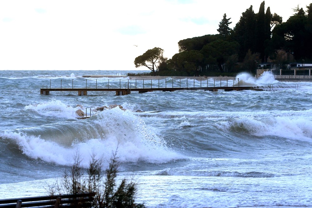 I danas je duž istarske obale bila vrlo izražena jaka plima - kraće vrijeme je tijekom dana za promet bio zatvoren most antenal, a zbog plime u kombinaciji s jugom i jugozapadnjakom danas se more prelilo na brojne istarske plaže, poput plaže u Špadićima, gdje je naš fotoreporter Milivoj Mijošek zabilježio snagu prirode u svom punom sjaju. U Špadićima kod Poreča more je prekrilo veći dio plaže, te su i klupe bile - nakratko - u moru.