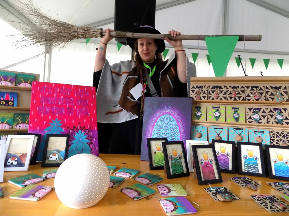 Na šumskom sajmu u šatoru predstavili su se obrtnici, udruge i umjetnici čiji su proizvodi inspirirani šumom, nastali su iz šume pa je festivalski program povezao šume, ruralno nasljeđe, gastronomiju i umjetnost. Među njima ilustratorica i slikarica Sara Gortan iz Sedme kuće, partnerskog obrta festivala. Na svom štandu izložila je rukotvorine od drva i naplavina kao i slike, a u prostoru školske zgrade postavila izložbu ilustracija "Šparuge s kauča", ovom prigodom pojavila se u izdanju šumske vještice, kako je rekla - od glave do pete. Obitelj Kocijančić iz Kaštelira, kao član Modelne šume, predstavila je proizvode koji su pripremljeni samo za šumski sajam, gljive, kisele gljive, ljekovito bilje, sapune na bazi maslinovog ulja, čajeve.