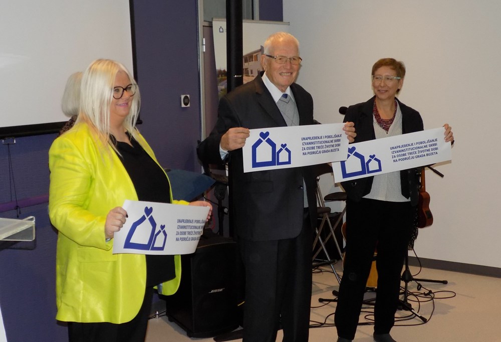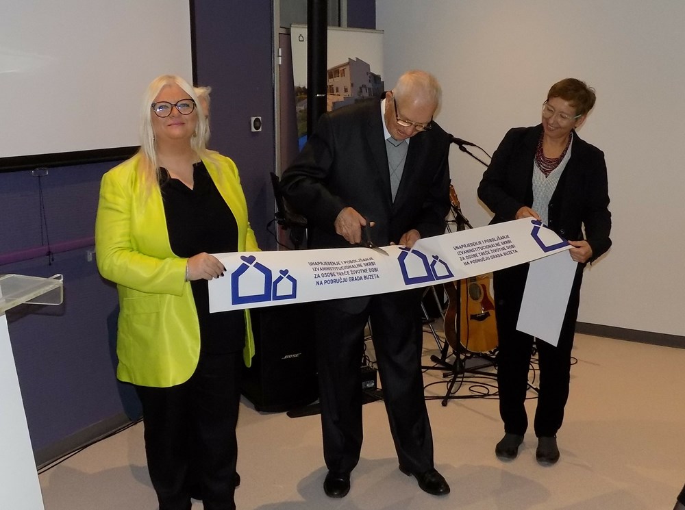 Izvaninstitucionalni dio Doma za starije osobe Buzet u sklopu EU projekta "Unaprijeđenje i poboljšanje izvaninstitucionalne skrbi za osobe treće životne dobi na području Grada Buzeta", simbolično je, presijecanjem vrpce, otvorio korisnik Doma ujedno i predstavnik korisnika u Upravnom vijeću Silvano Komar, uz podršku voditeljice odjela dnevnog boravka i pomoći u kući Sanje Rupene i domaćice dnevnog boravka Goranke Črnac. Time je ujedno obilježen i završetak dogradnje i rekonstrukcije Doma za starije osobe.
