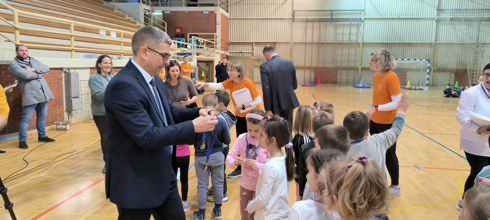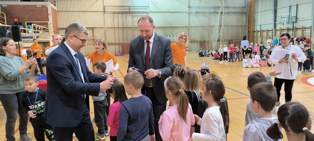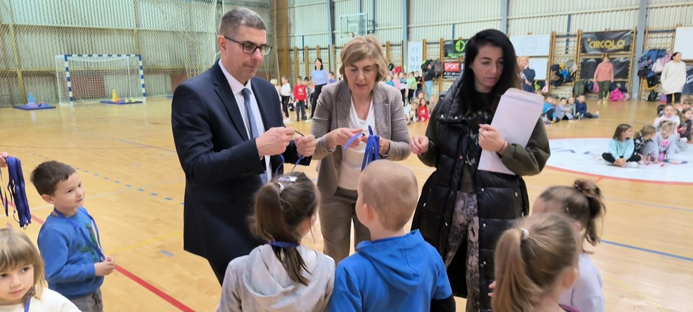 Gradonačelnik Marko Paliaga je danas uz njegovog zamjenika Davida Modrušana i načelnika Općine Žminj Željka Plavčića podijelio medalje djeci koja su u sklopu Projekta "Hrvatska pliva" uspješno naučila samostalno plutati na vodi i plivati.