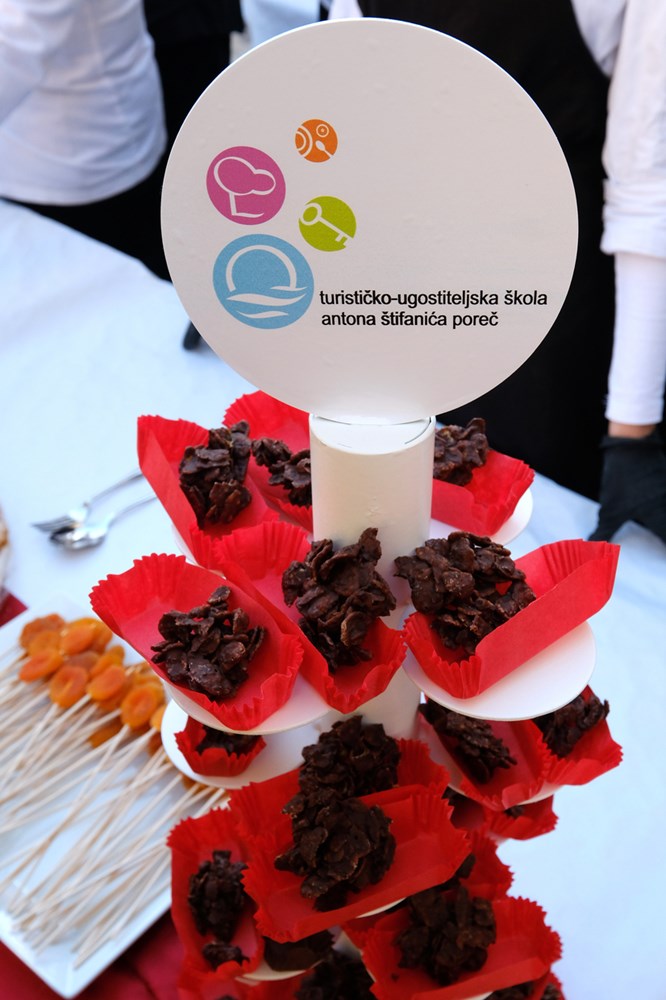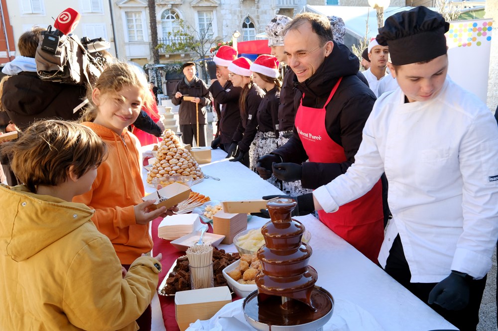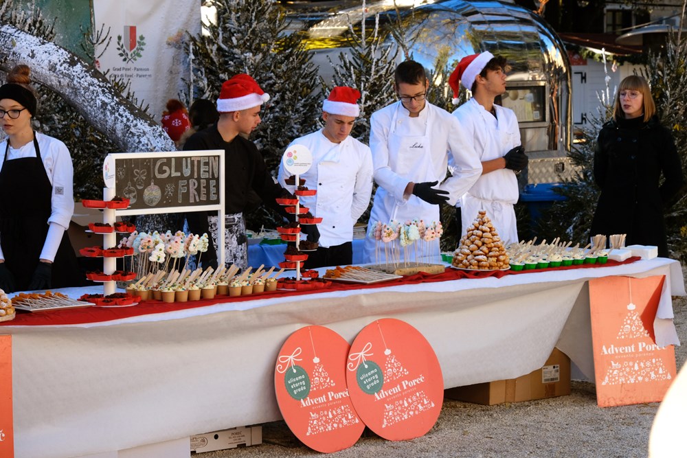 One najmlađe, osim okusa, posebno je oduševio atraktivan božićni izgled slatkih zalogaja. U njihovoj su izradi sudjelovali učenici prvih, drugih, trećih i četvrtih razrednih odjela turističko-hotelijerski komercijalist (THK), učenici prvog, drugog i trećeg razreda kuhara, konobara i slastičara, uz stručne učitelje Željana Peložu, Sebastiana Milešu, Tanju Radetić Zidarić, Sanju Pilato, Biserku Udovičić i Mateu Marić, a materijal je osigurao Grad Poreč. Na podjeli su im se pridružili i ravnateljica TUŠ-a Tatjana Gulić Pisarević, gradonačelnik Loris Peršurić i njegov zamjenik Elio Štifanić, te voditeljica Odsjeka u Upravnom odjelu za društvene djelatnosti Tihana Mikulčić. Dječji puhački orkestar Porečki Delfini, Hit Revival Band, te dječja radionica izrade ukrasa pod vodstvom DND-a Poreč, dodatno su upotpunili atmosferu.