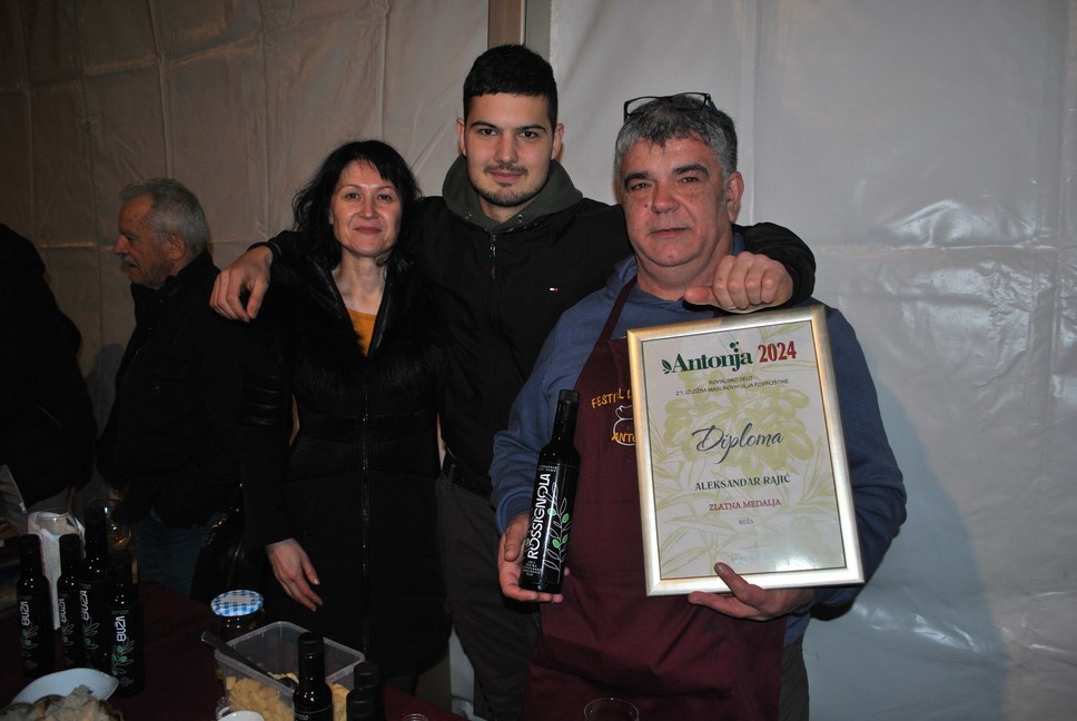 "Najveću nagradu sam dobio za bužu. Osim buže gajimo rošinolu i nešto bjelice, a sva tri moja monosortna ulja su u kvalitativnoj kategoriji zlatne medalje. Prošla sezona je bila izuzetno zahtjevna. Najprije je bilo puno kiše i vlage pa je valjalo kontrolirati masline da se ne rasplamsa paunovo oko. Visoke temperature su sprječavale pojavu maslinine muhe, ali je prava najezda nastupila u rujnu. Puno godina radio sam masline s ocem i majkom pa sam znao da treba ubrati dok se ne izlegu crvi, bez obzira da li su dozrele. Prošle smo, ne baš izdašne, maslinarske godine uspjeli proizvesti 300 litara ulja. Na kraju zahvala ide mojoj obitelji, supruzi Arijani i sinu Vitu", rekao je Rajić.