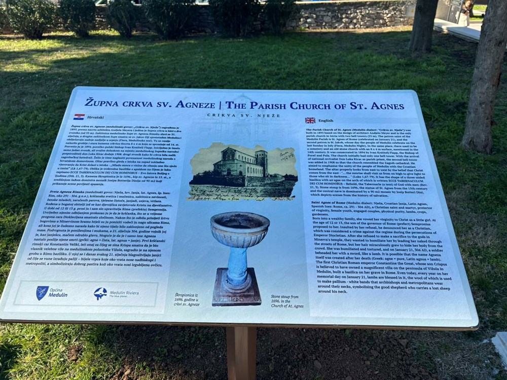 Otkrivanje informativne ploče bila je kruna provedenih projekata i radova u protekloj godini usmjerenih na obnovu i uređenje okoliša crkve sv. Agneze u Medulinu, financirani su donacijama Općine Medulin i Turističke zajednice Općine Medulin, a sve u cilju njena predstavljanja turistima i mještanima kao značajne povijesne znamenitosti.