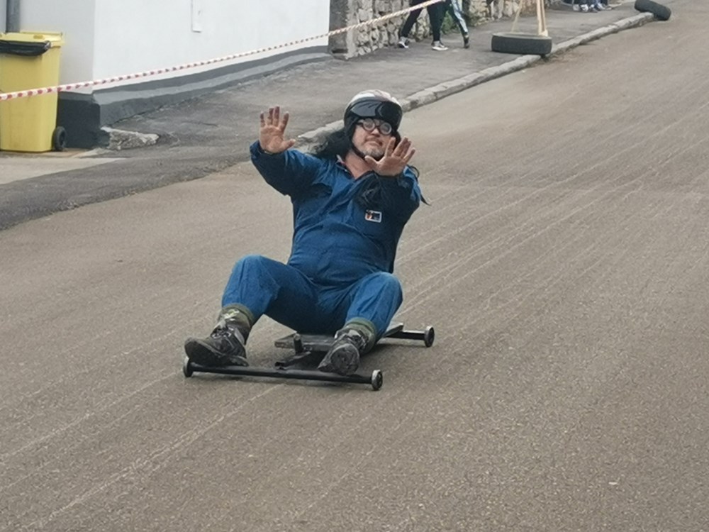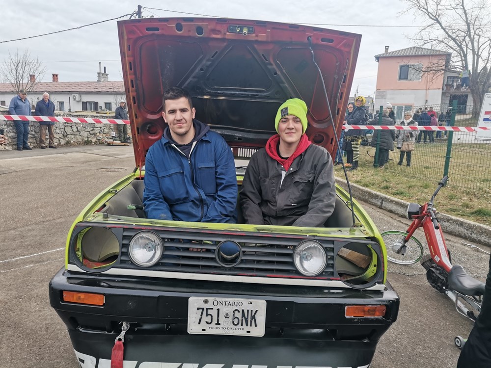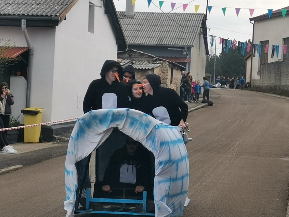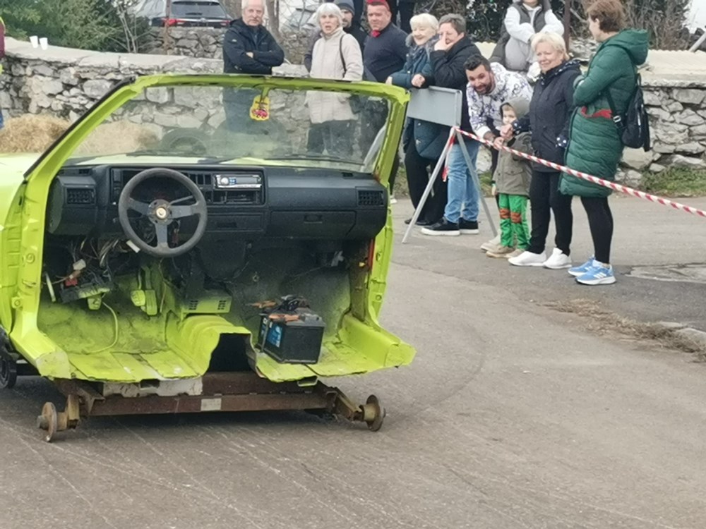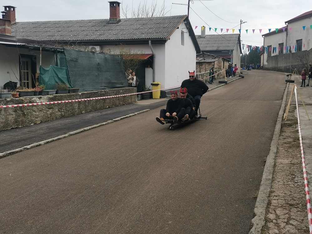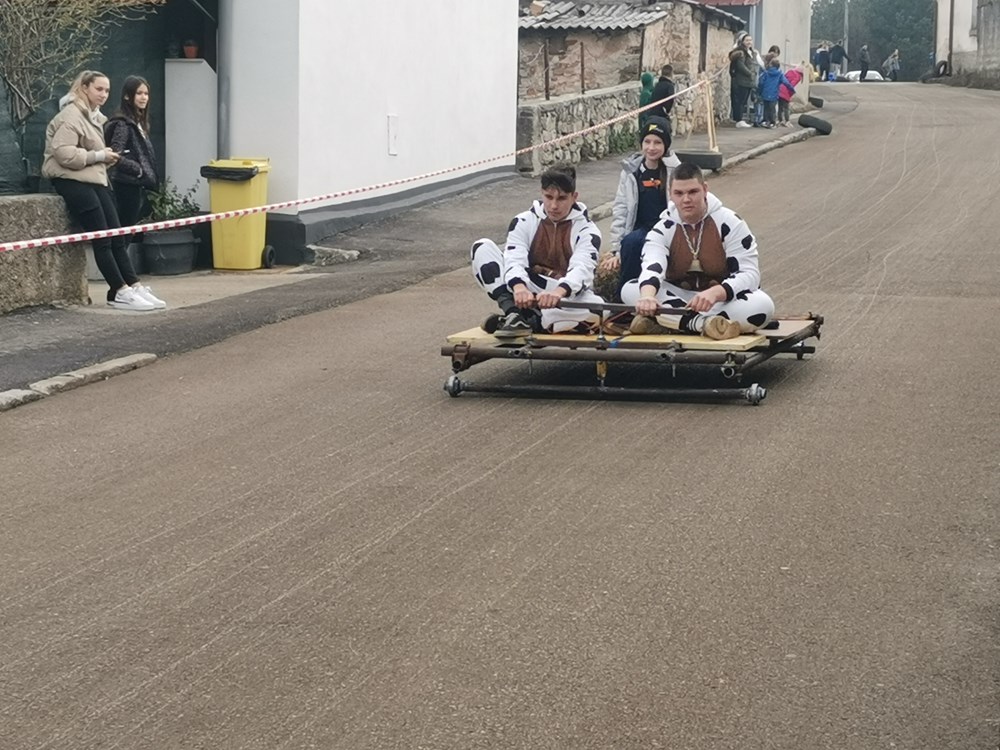 Bilo je tu raznih kombinacija, ih haube prepolovljenog Golfa 2 upravljali su timunom Michael Prusić i Michael Brala iz Plomina, iz Koromačna su stigle Kravice, iz Strmca Pingvini i Vragovi, Bruno Butković stigao je sa svojim karićem ručne izrade iz Pule a u spuštanju niz nizbrdicu okušal se i jedna djevojčica te organizator ispred „Maškari spod kamina“ Mauro Zupičić koji nam je rekao