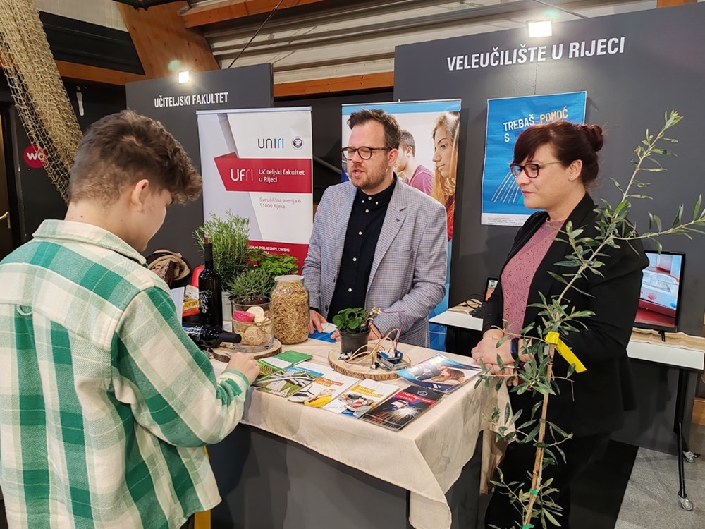 - Učenici su pokazali veliki interes, a posebice za programima Održivog agroturizma, Vinarstva i Informatike. Osim studijskih programa, Veleučiliste provodi programe cjeloživotnog učenja a najnoviji je Uzgoj divljih šparoga. Novitet je da se na Poslovnom odjelu studentsko iskustvo s naglaskom na primjenu naučenog i praktičan rad nadograđuje novim studijima u pripremi Digitalno poduzetništvo i Održivo poduzetnistvo, a od ove godine za sve buduće studente koji izaberu i upišu Veleučilište u Rijeci organiziraju se besplatne instrukcije za maturu iz hrvatskog i engleskog jezika te matematike, rekla je dr.sc.biotech. Martina Peršić, predavač na tom Veleučilištu. Karla Nešković Vranješ sa Učiteljskog fakulteta u Rijeci je dodala: