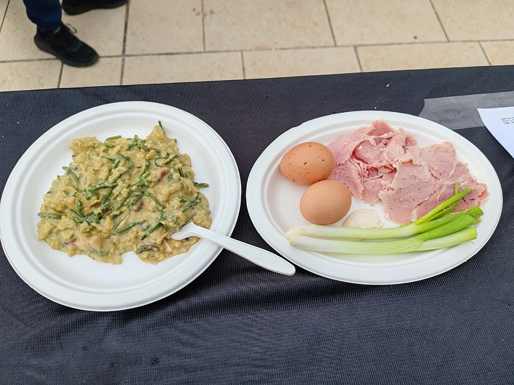 porcija fritaje od šparoga sa pancetom te porcimo šunke sa tvrdo kuhanim jajima,