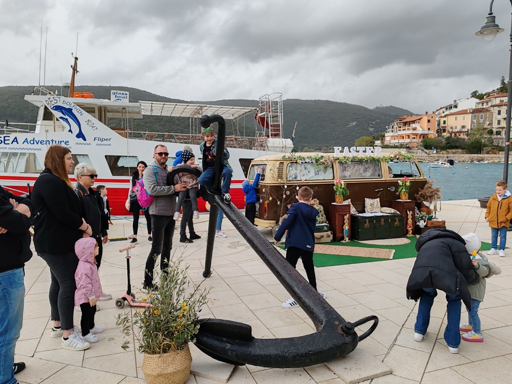 Za glazbeni ugođaj pobrinuo se Duo Sunset iz Rijeke, a rivom su šetali zabavljajući djecu popularni likovi iz crtića koji su dijelili čokoladna jaja.