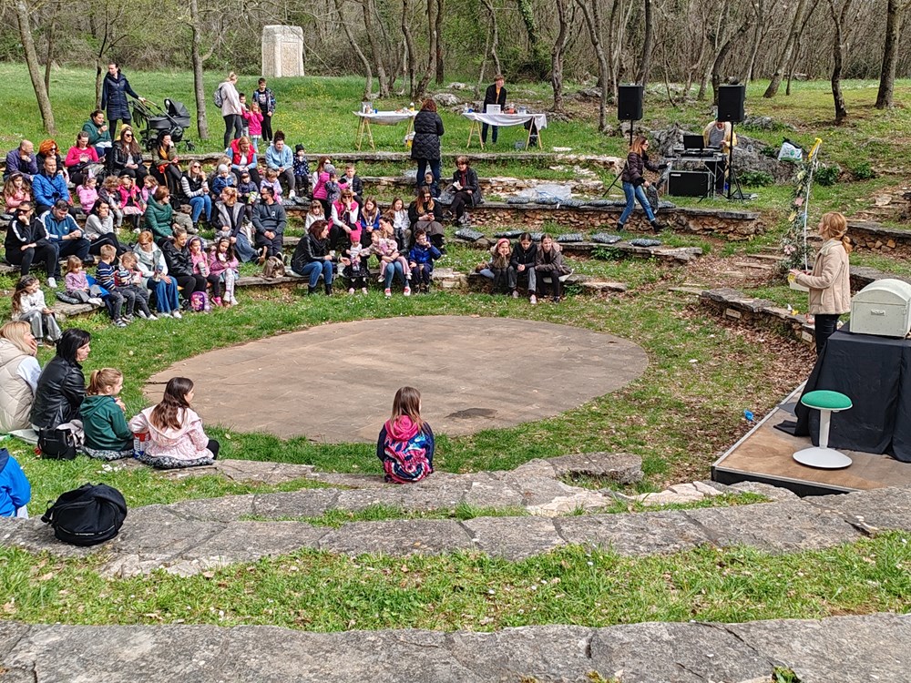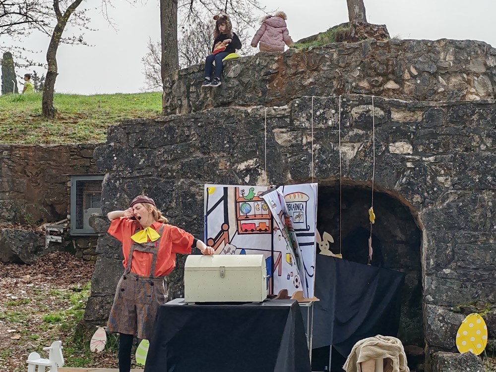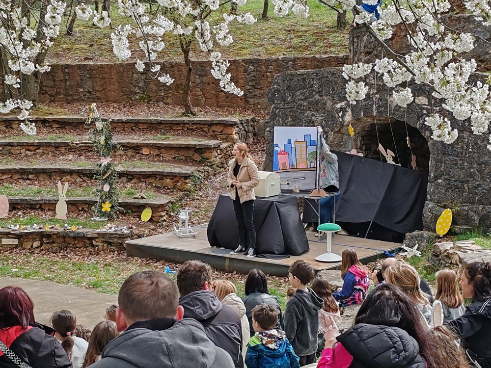 Nakon toga u Dolcu amfiteatru na programu je bila dječja predstava "Pale sam na svijetu" Udruge Birikina a zatim interaktivna radionica "Potraga za uskršnjim blagom" koju su organizirali učenici drugog razreda jezične gimnazije Srednje škole Mate Blažine Labin, sa svojom razrednicom i nastavnicom engleskog jezika Karlom Golja Milevoj te druženje u Park u skulptura na interaktivnoj radionicu “Easter egg hunt” na engleskom jeziku a bila je namijenjena djeci od 1. do 8.razreda. Najuspješnije su čekale slatke nagrade.
