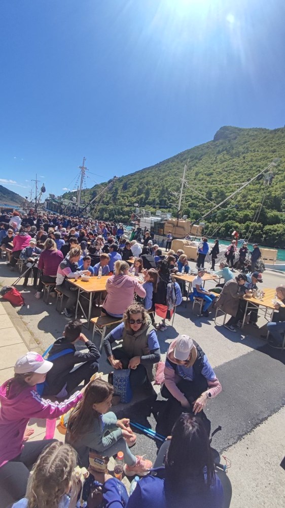 Tristotinjak Labinjana sa svih strana Labinštine, mladi i stari, muškarci i žene, pa i cijele obitelji okupilo se nešto prije 10 sati po sunčanom i prohladnom vremenu na trgu u labinskom naselju Kature gdje su se obavljali posljednji upisi, dijelile majice i voda.
