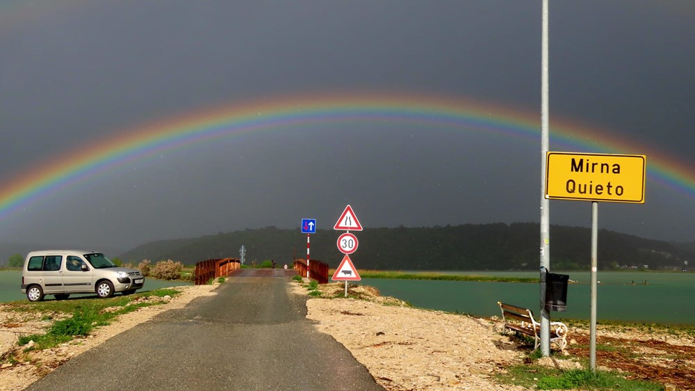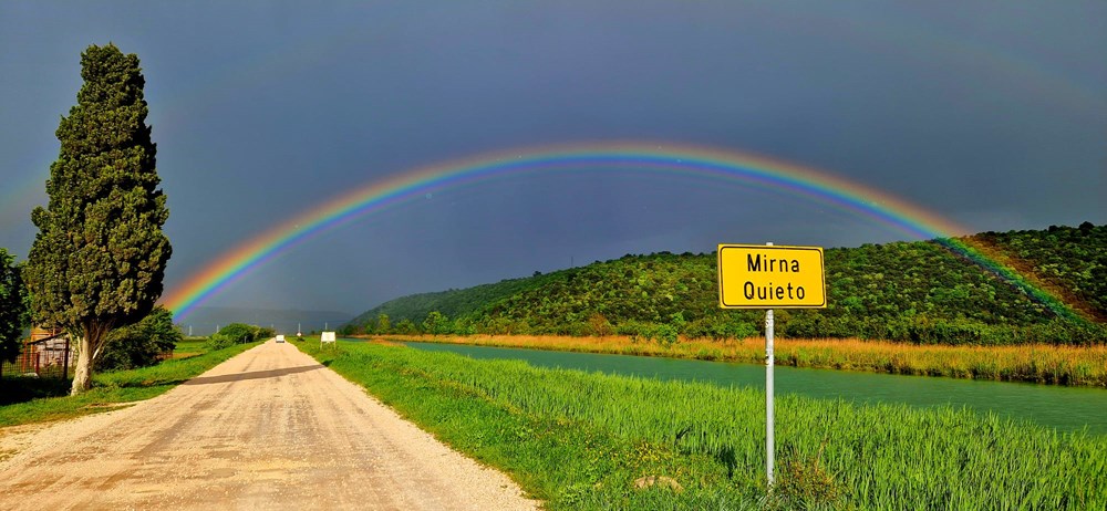 Prolazak ispod duge neostvareni san je mnogih romantičara, ipak sudeći po fotografijama našeg čitatelja Vanje Puškarića, želje se ponekad ostvare, rijeka Mirna je svojim tokom završila ispod duge i tako postala simbolom ispunjenih snova.