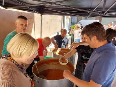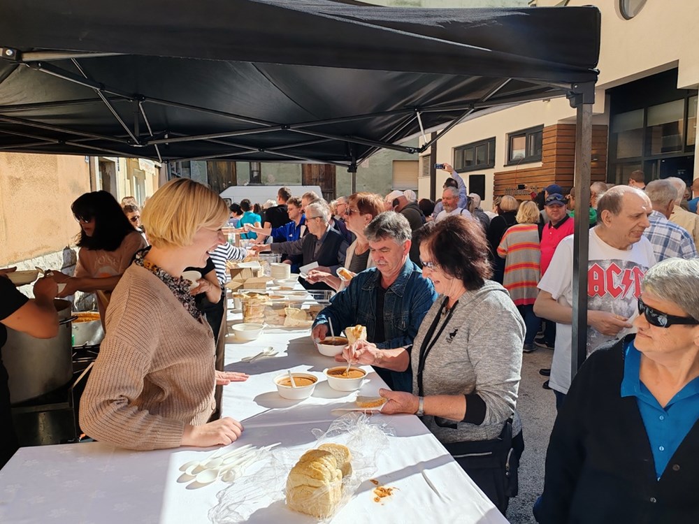 Stigao je europarlamentarac Valter Flego koji se družio sa građanima koji su stigli na porciju besplatnog graha a neki su ga ponijeli i kući. Druženje uz grah i glazbu trajalo je od 9 do 11 sati na platou ispred ribarnice gradske tržnice.