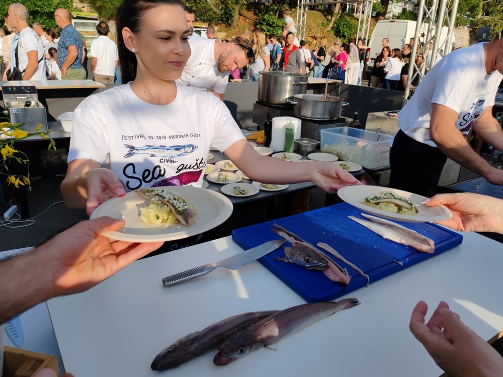 - Vrlo sam zadovoljna cijelom manifestacijom i odazivom jer je došlo jako puno ljudi. Ujutro smo imali radionicu prebiranja ribe, došla je kočarica i donijela ribu. Hrvoje Hrvatin je djeci objašnjavao kako se riba lovi i kako se vadi iz mreže. Bilo je škampi, grilja, folpi, oslića, lignji. To je sve iskorišteno u pokaznim radionicama. Ugostitelji su ponudili raznovrsne delicije u raznim kombinacijama, od hobotnice na salatu, prženih lignji, pidoća odnosno dagnji, buzare sa palentom i mekušcima i hladnu tjesteninu sa kozicama. Ukupno je pripremljeno 1500 porcija po cijeni od šest do 12 eura, ovisno o tome što je tko želio. Imali smo tu i lokalne vinare iz udruge Trs sa svojim kvalitetnim autohtonim vinima, labinsko craft pivo Labona pa je hrane i pića bilo dovoljno za svakoga tko je došao na ovu manifestaciju koju ćemo ponoviti u rujnu, rekla je direktorica TZ Labin-Rabac Astrid Glavičić.