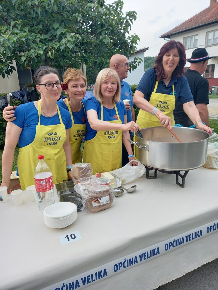 RKUD "Rudar" sudjeluje već godinama na ovoj poznatoj folklornoj manifestaciji koju organizira prijateljski KUD "Ivan Goran Kovačić" iz Velike, koji su svoje prijateljstvo potvrdili i potpisivanjem Povelje o prijateljstvu 1997 godine. Dugogodišnje prijateljstvo dvaju KUD-ova traje više, već 31 godinu, razmjenjuju nastupe i sudjeluju u programima koje organiziraju u Raši, Labinu ili Velikoj i Požegi. Skupina iz Raše je izvela ples Tanac i svirke na mehu i mešnicama a svirač je bio Rino Martinčić.
