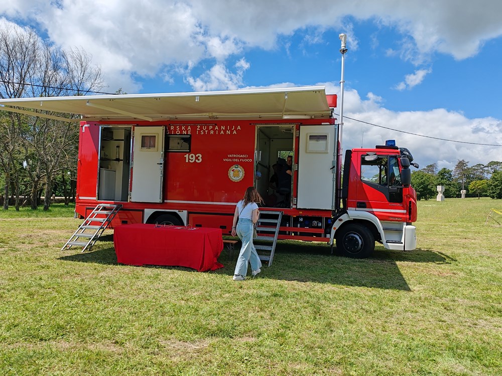 Pokazali smo i djeci rad s vatrogasnim aparatima kako bi osigurali podmladak u vatrogastvu. Sistem rada i postupak nas i Talijana je bio isti, jedino se razlikujemo u opremi pa ćemo nastojati unificirati opremu. U listopadu pedesetak pripadnika iz Labina sudjelovati će na uzvratnoj vježbi u Italiji, rekao je Stepančić te istaknuo kako je sve koordinirano iz mobilnog županijskog stožera u vozilu na terenu.