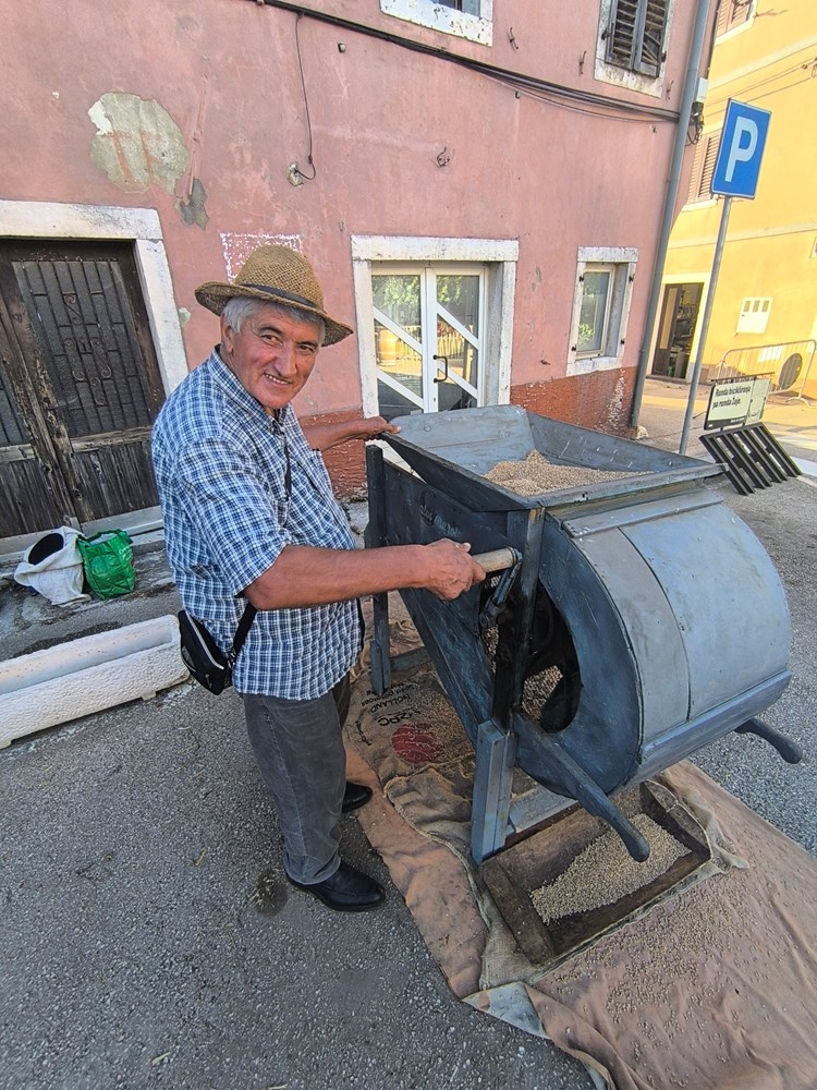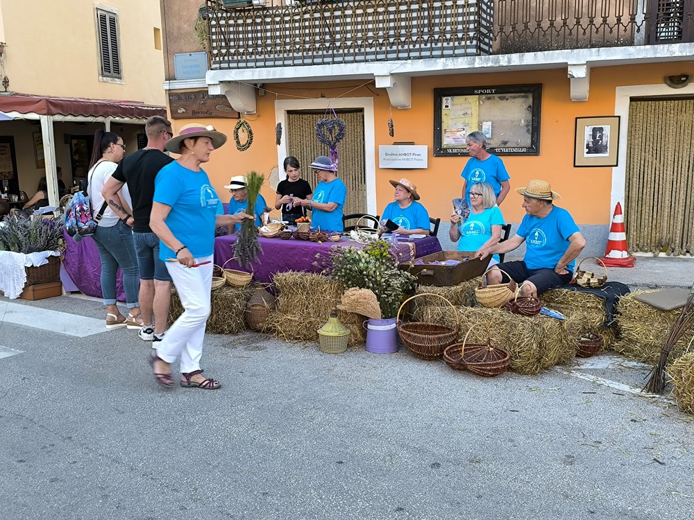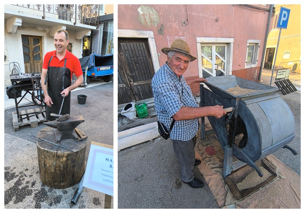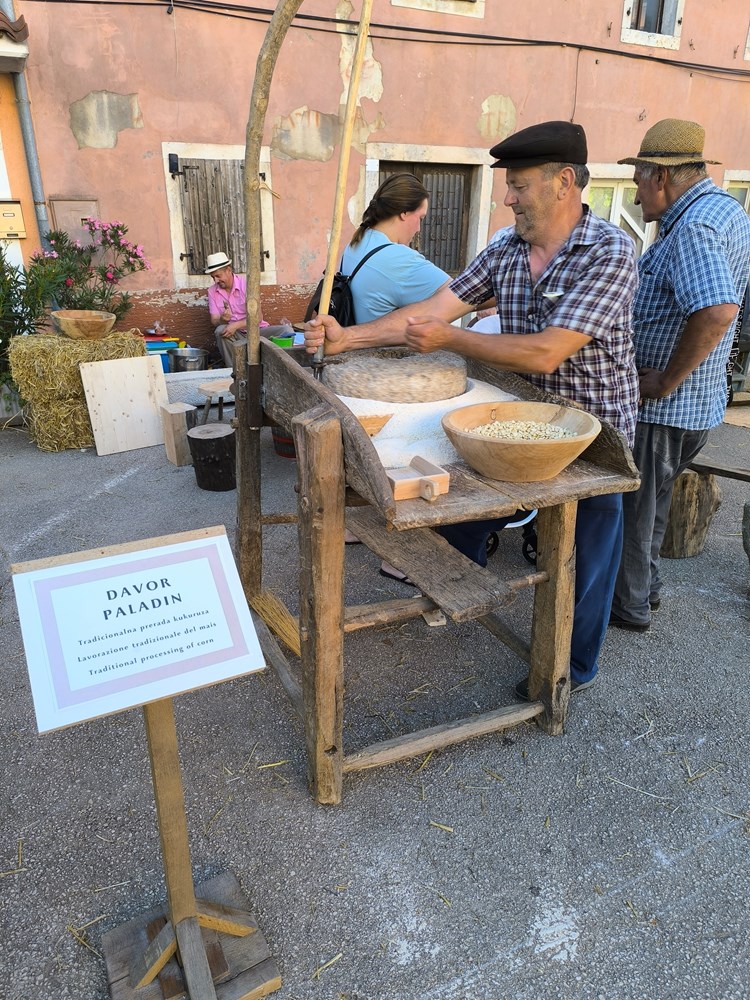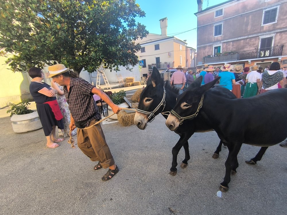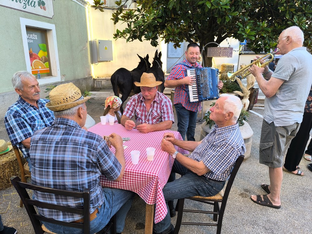 Društvo ispred trgovine kartalo je briškulu, što je bio jedan od najdražih načina zabave koji se prakticirao u prošlosti. Autentičan doživljaj upotpunio je Antonio Radin sa svoja dva tovara, koja je doveo s obližnjeg ranča. Magarci su marljive i radišne životinje bez kojih se nekad nije mogao zamisliti život na selu, a sada su više turistička atrakcija te su se mnogi poželjeli fotografirati s njima.Svoje mjesto i štand na ovom skupu starih baština dobio je i Sergio Demark koji izrađuje violine i bajseve.