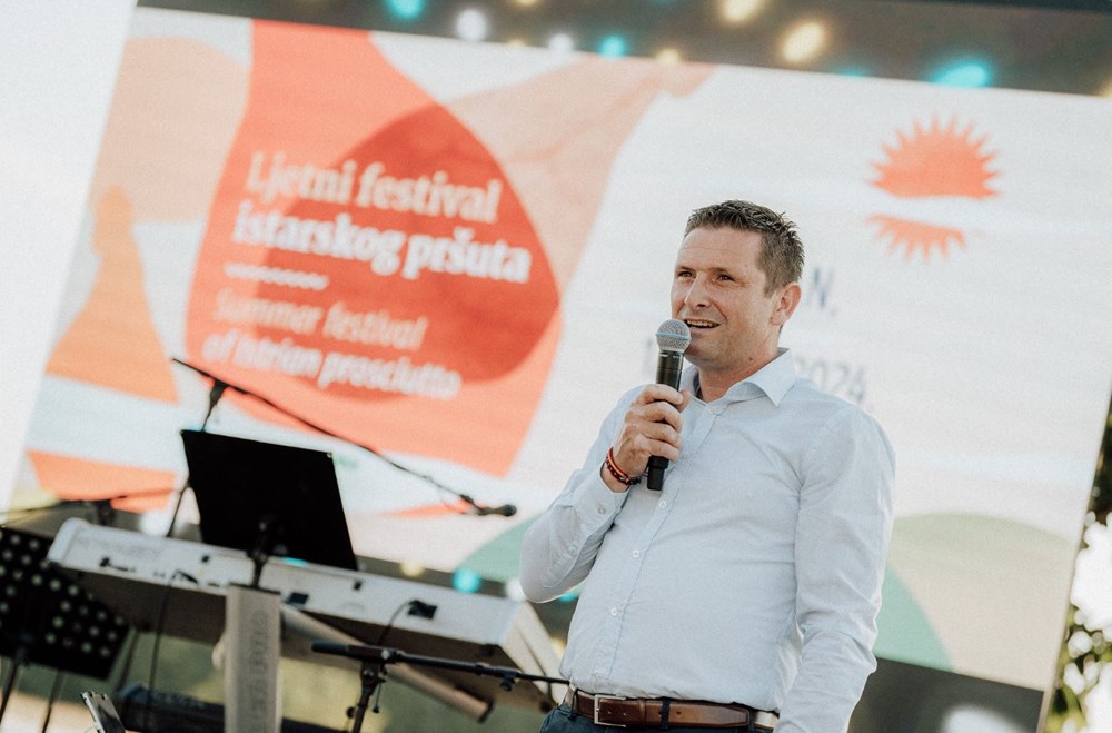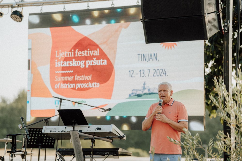 Manifestacija je otvorena prilično ležerno, bez velikih govora. Načelnik Tinjana Goran Hrvatin, kazao je kako se na Ljetnom festivalu istarskog pršuta slavi perjanica istarske gastronomije, a Općina se trudi učiniti je svake godine sve boljom.