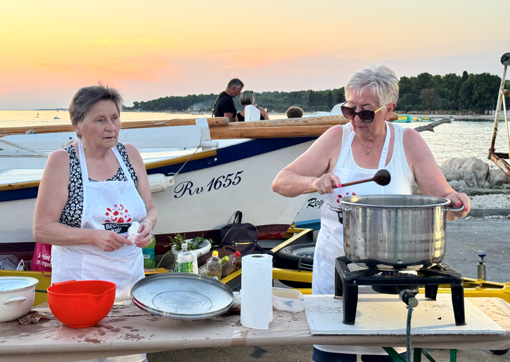 U vrijeme zalaska sunca, na platou iza ribarske kućice započelo je timsko revijalno kuhanje brodeta. Deset ekipa pristiglo je iz Istre i s Kvarnera, uključujući timove poput Manikomio, Dream Team, Ki-Zo, Nona & Oliver, Rovinj batana Regina, Bocconcino, Fažana i Tri generacije, koji su se natjecali u pripremi ovog tradicionalnog jela. Svaka ekipa dobila je osnovni paket od 7 kilograma miješane ribe, pregače, kuhalo i plinsku bocu, dok su ostale sastojke sami donijeli.