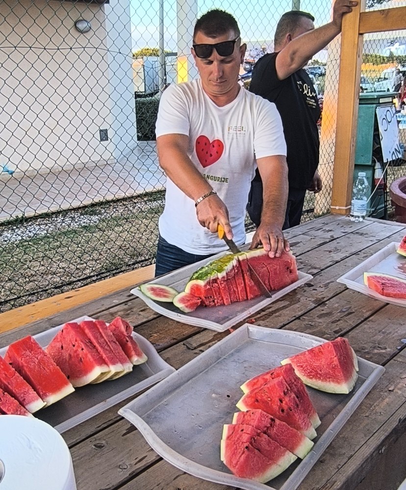 - Ove godine smo proizveli preko 50 tona angurije od čega je više od tonu završilo ovdje na fešti. Sezona je bila dosta rodna, a na ovogodišnjoj manifestaciji imamo i najtežu anguriju od 28,5 kilograma, s čime je srušen rekord od prije pet godina gdje smo imali primjerak od 26,5 kilograma, rekao je Luciano Musizza bez čijih lubenica ne bi bilo ni fešte od angurije u njegovim Rošinima koju, s njim u suradnji, već 30 godina organizira Turistička zajednica i Općina Tar-Vabriga.