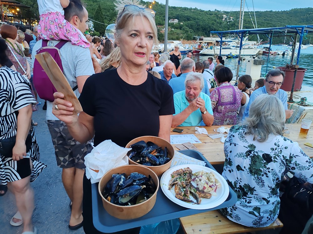 - Pidoći su odlični, ukusni i puni. Lijepa fešta, dobro društvo, zaključuje Blažina. Dok su posjetitelji tražili slobodno mjesto za stolovima na rivi pune ruke posla imao je Miljenko ILjadica Mika i njegov ugostiteljski obrt Mika iz Labina koji je sa dvadeset djelatnika pripremao i dijelio porcije
