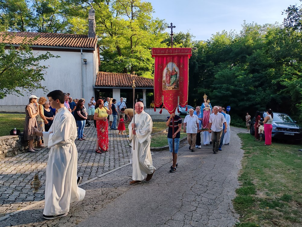 Druga misa sa svečanom procesijom na rasporedu je bila u 18 sati ispred crkve. Koncelebriranu svečanu svetu misu predslavio je otac Vinko Vuković, Pavlin a koncelebrilali su svećenici velečasni Mirko Vukšić, Stipe Breko, Jurica Vekić i Wojtiech Wlazlo. Vjernici su prije svečane svete mise imali priliku za molitvu svete krunice koju je predvodio labinski župnik Mirko Vukšić i za ispovijed na otvorenom koju je držalo nekoliko svećenika.