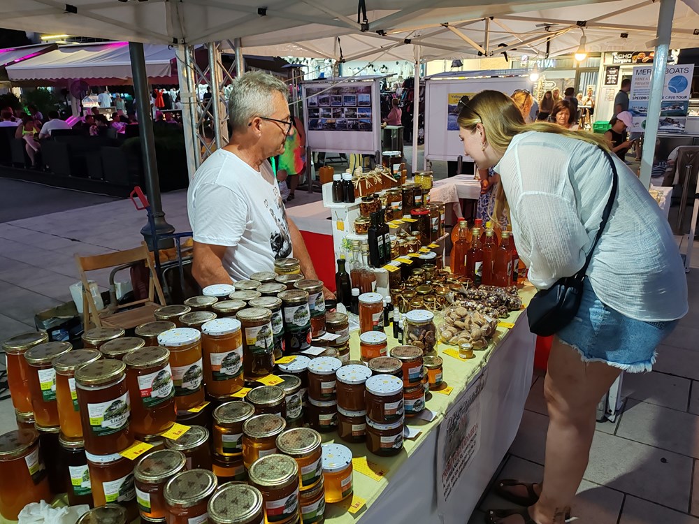 - Nudimo domaće voćne rakije i likere. Rabac je prekrasno mjesto, u petak je bilo puno više ljudi nego u subotu ali duga je noć. Možda je razlog u smjeni gostiju. Ostaje nam još nedjelja, rekla je Larisa. Profesionalni pčelar Dario Dješka stigao je iz Osijeka sa svojim medom i proizvodima od meda