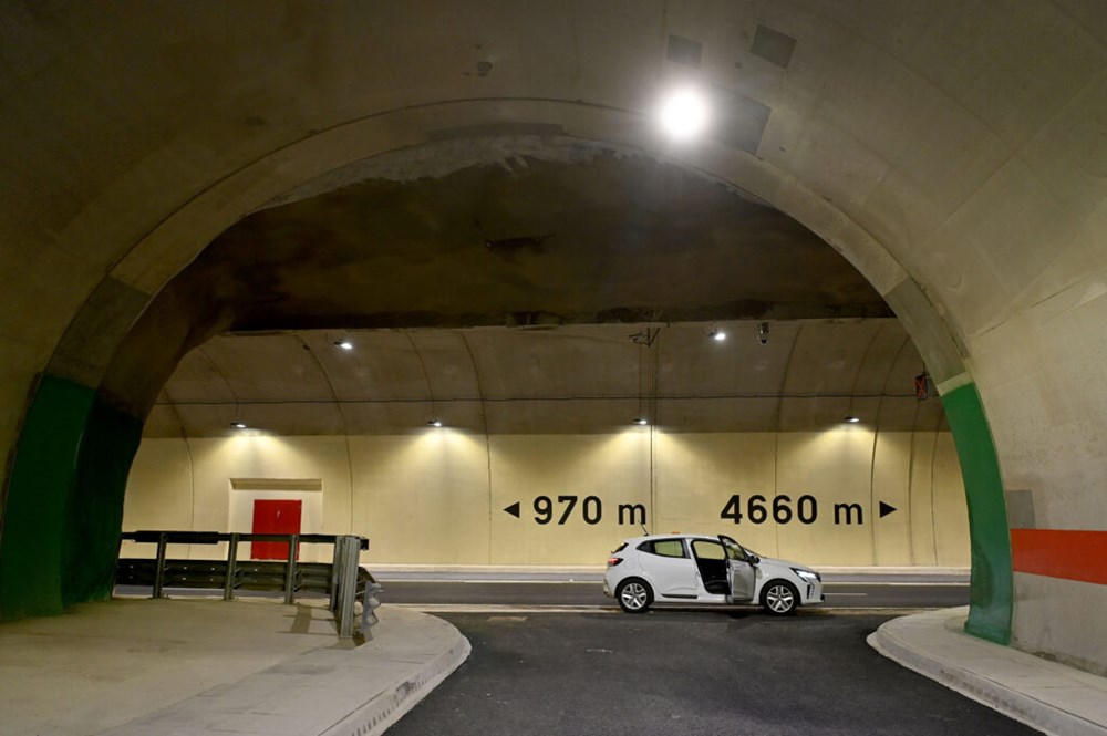 Ulazimo u sam tunel, dugačak čak 5.630 metara, što je 500 metara duže od stare cijevi tunela. Portal novog tunela kvadratnog je oblika, s osvjetljenjem znatno intenzivnijim od onoga u »starom« tunelu.