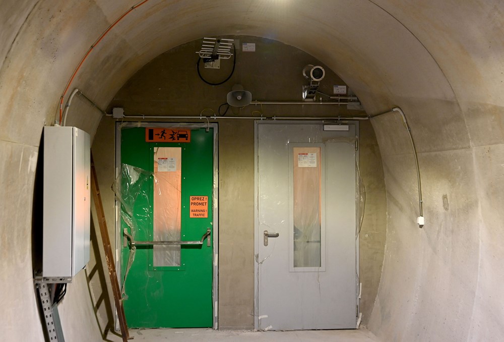 – Ovo je jedan od dvanaest pješačkih poprečnih prijelaza koji povezuju tunelske cijevi. Uz pješačke, tu je i još dvanaest prolaza za pješake i vozila, koji su znatno veći. Od tih dvanaest, sedam je namijenjeno prolasku interventnih vozila između dviju cijevi, a pet za ostala vozila. Ti prolazi služe prvenstveno za evakuaciju vozača i putnika iz vozila u tunelu, u slučaju požara ili nesreća, na način da, ukoliko primjerice dođe do požara u jednoj cijevi, ljudi koji se zateknu u vozilima u njoj, mogu izaći iz vozila i pronaći zaklon u drugoj cijevi tunela, u kojoj se promet odmah obustavlja. Prolazi za interventna vozila omogućavaju vatrogascima, hitnoj pomoći i drugim službama da iz jedne cijevi prijeđu u drugu, ukoliko ne mogu doći do mjesta nesreće ili požara kroz sam tunel u kojoj je do požara ili nesreće došlo, kaže Dušić, dodajući da je cijeli tunel pokriven nadzornim kamerama, kao i sustavom vatrodojave koji se automatski aktivira u slučaju požara.