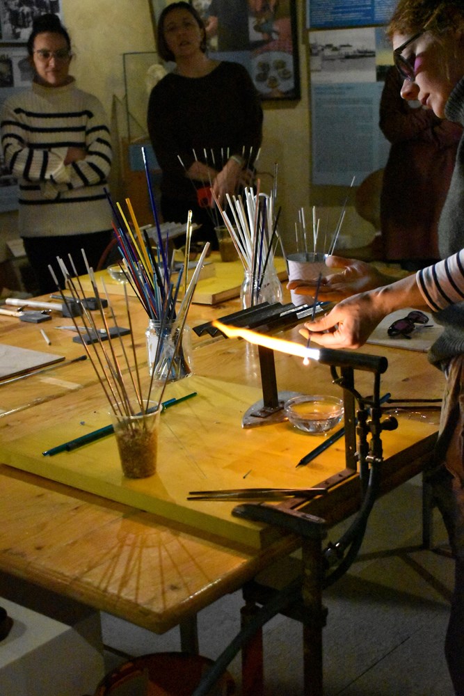 Nakon što je u siječnju napravljen cjelogodišnji plan po mjesecima kako bi svi zainteresirani na vrijeme bili informirani o sadržaju i programu projekta, sredinom veljače održana je prva radionica izrade staklenih perli kojih ima i u samom postavu umaškog muzeja. U nedostatku domaćih staklarskih stručnjaka, iz Italije je dovedena majstorica stakla Valentina Verde koja radi pri udruzi Eta Beta iz Bologne. Za izradu staklenih perlica potrebna je posebna vještina, tako da su se sudionici u trosatnoj radionici upoznali s alatom, tehnikom i načinom rada sa staklom, nakon čega su dobili priliku za uspomenu izraditi svoj primjerak staklenog ukrasa što im je u nekoj mjeri i uspjelo. Dvije polaznice su izrazile želju za nastavkom bavljenja ovom vještinom, nakon čega su dobile dodatne potrebne informacije.