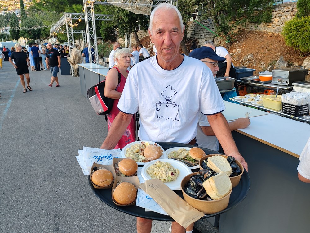 - Nudimo četiri jela po pristupačnim cijenama, buzaru od dagnji odnosno pidoći po šest eura, srdele sa krumpir salatom isto po šest eura, salatu od folpi po osam eura i kalamari sa prilogom od krumpir salate također po osam eura. Ukupno smo sve zajedno pripremili oko 1.200 porcija jer sam na ovoj fešti sam. Dan je bio lijep, kao i večer, puno je ljudi i olekujem da ćemo do kraja sve uspješno odraditi, rekao je Miljenko Iljadica, vlasnik "Mike".