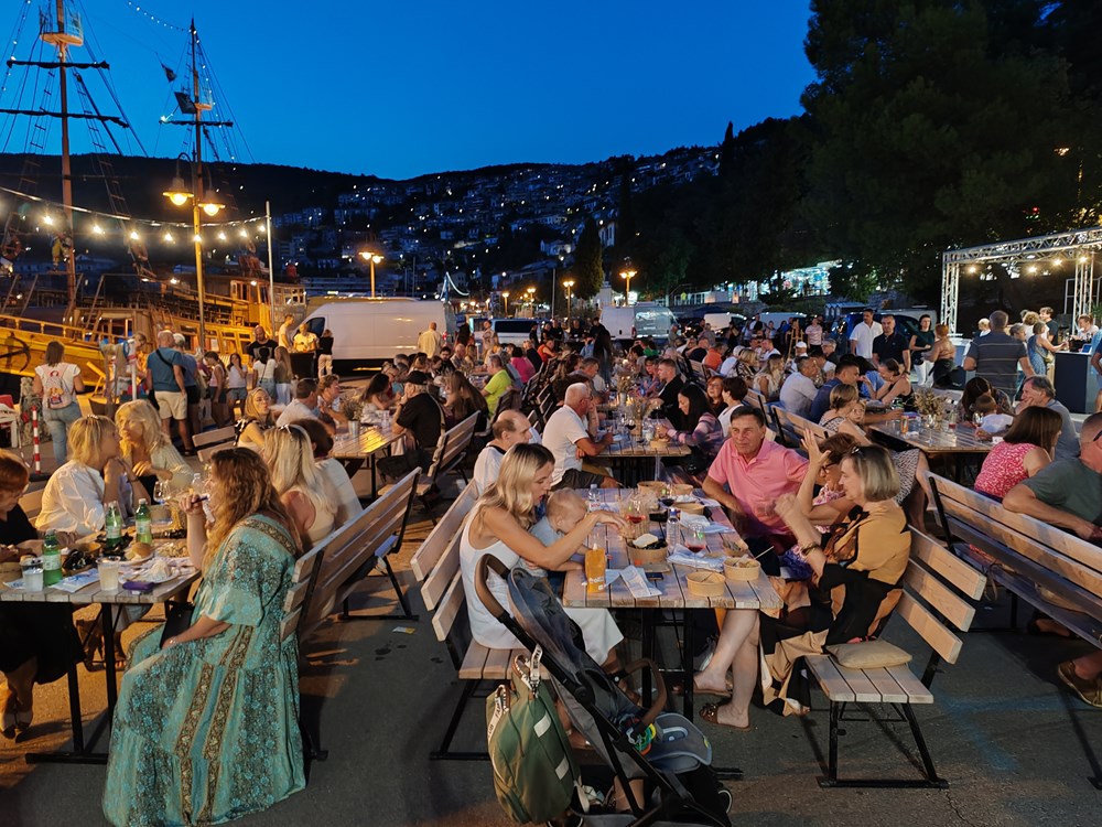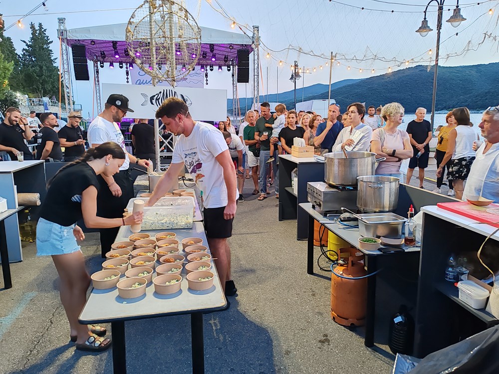 Za njihove delicije koje su se dijelile besplatno čekalo se u dugom redu. Uz zvuke glazbe i mirise svježe pripremljenih morskih specijaliteta, opuštanje i uživanje u jednostavnim životnim radostima uz čašu dobrog vina posjetitelje je uvodno zabavljao duo Behind of house iz Rijeke.